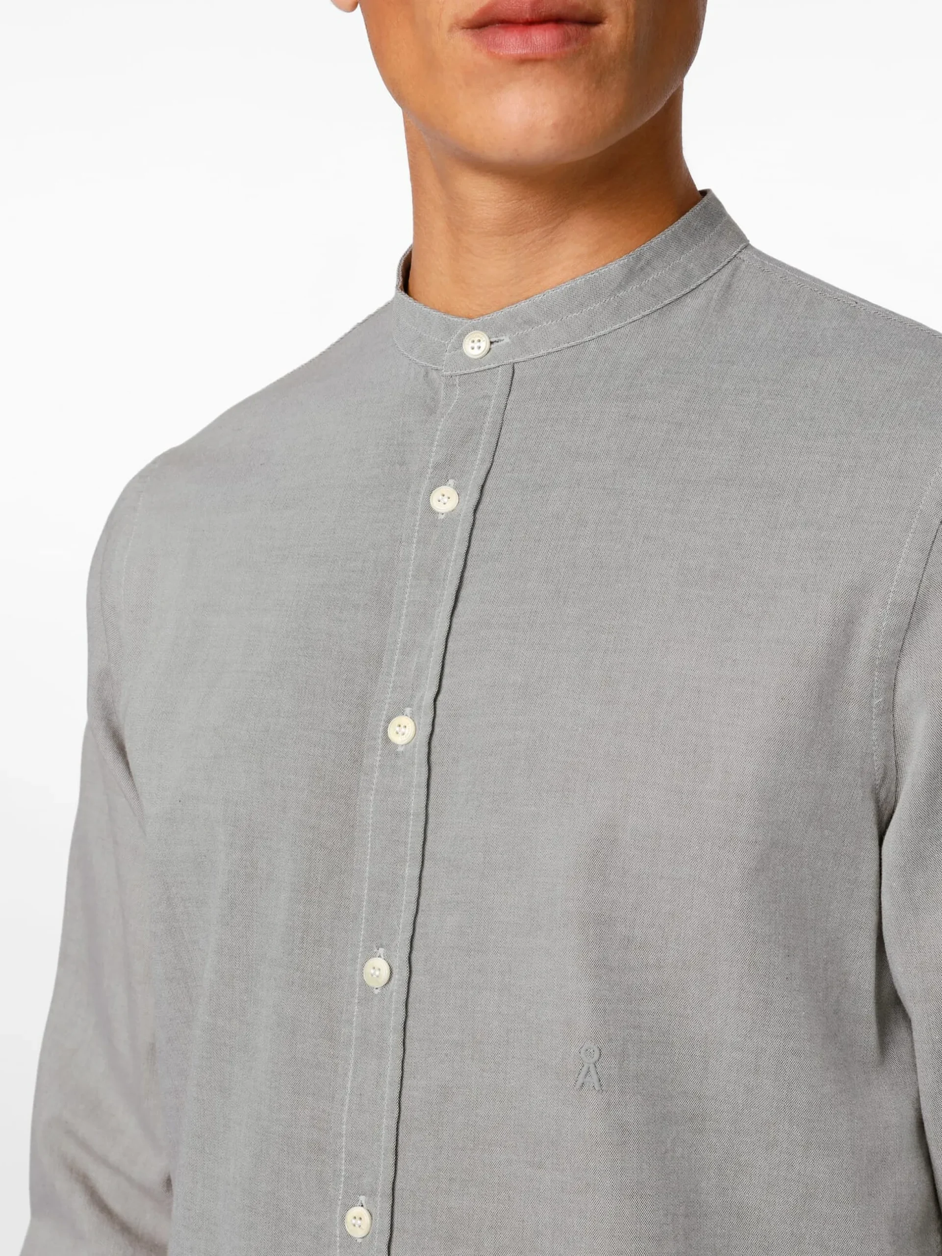 Armedangels fertigt dieses Hemd mit schmalem Stehkragen aus kontrolliert biologisch angebauter Baumwolle. Dass es ohne Brusttasche gefertigt ist, verstärkt seinen puristischen Charakter noch. Das Gewebe ist ein Chambray, der sich durch eine spezielle Webart auszeichnet, bei der die Kett- und Schussfäden verschiedenfarbig sind, wodurch ein markanter Melangeeffekt entsteht. Kontrastnähte ergänzen dieses optische Bild. Der Rumpfsaum ist leicht gerundet, die Manschetten sind knöpfbar.