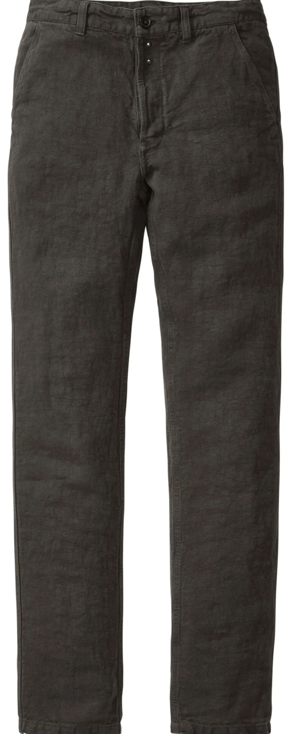 Ungefütterte Leinenhose, die mittels Knopfleiste, Knopf und Sicherheitshaken geschlossen wird. Die Hose ist mit zwei Seitentaschen und zwei Gesäßtaschen ausgestattet.