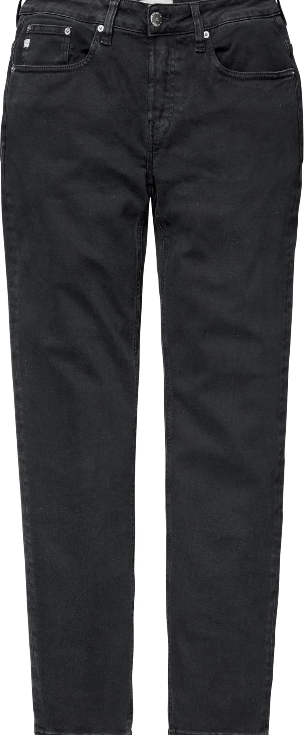 Jeans im klassischen 5-Pocket-Stil, mit mittlerer Taille und zum Knöchel hin zulaufenden Beinen. Die Jeans wird mittels Knopfleiste und Knopf geschlossen, alle Knöpfe und Niete sind silberfarben mit Satin-Finish. Das Gewebe besteht zu 75 Prozent aus kbA-Baumwolle und zu 20 Prozent aus recycelter Baumwolle. Eine zweiprozentige Elastanbeimischung verbessert den Tragekomfort und die Formtreue. Die Jeans wird in familiärer Atmosphäre in einem Betrieb in Tunesien produziert.