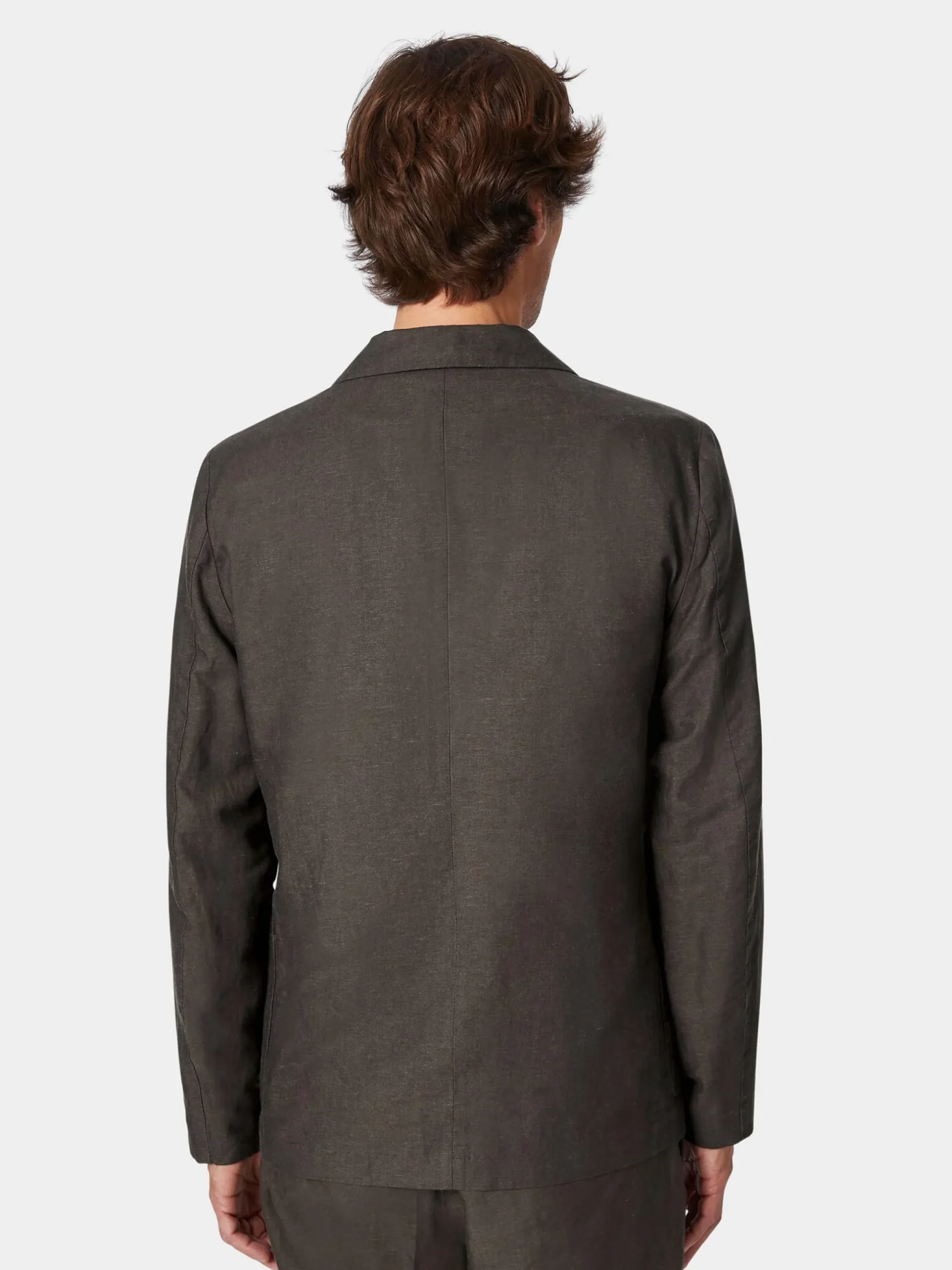 55% Baumwolle, 45% Leinen. Ärmelfutter 100% Lyocell (TENCEL™). Steinnussknöpfe. Hergestellt in Litauen. Rückenlänge bei Größe L = 78 cm.