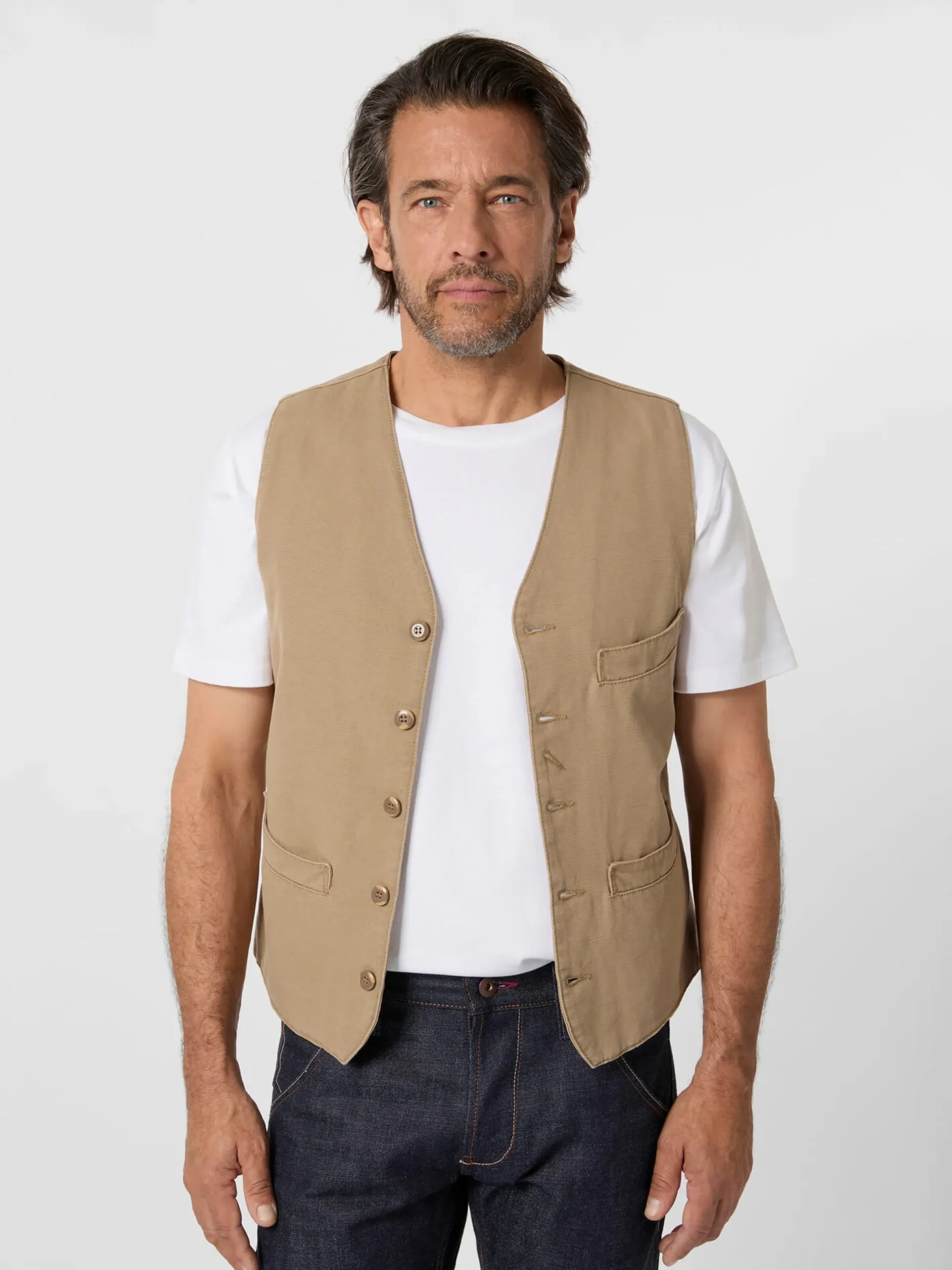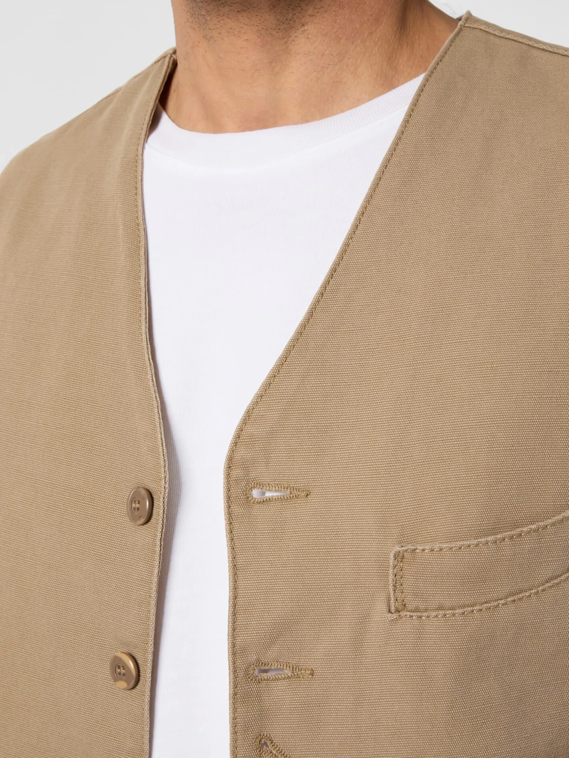- Kragenlose Weste: lässig in Schnitt und Stoff