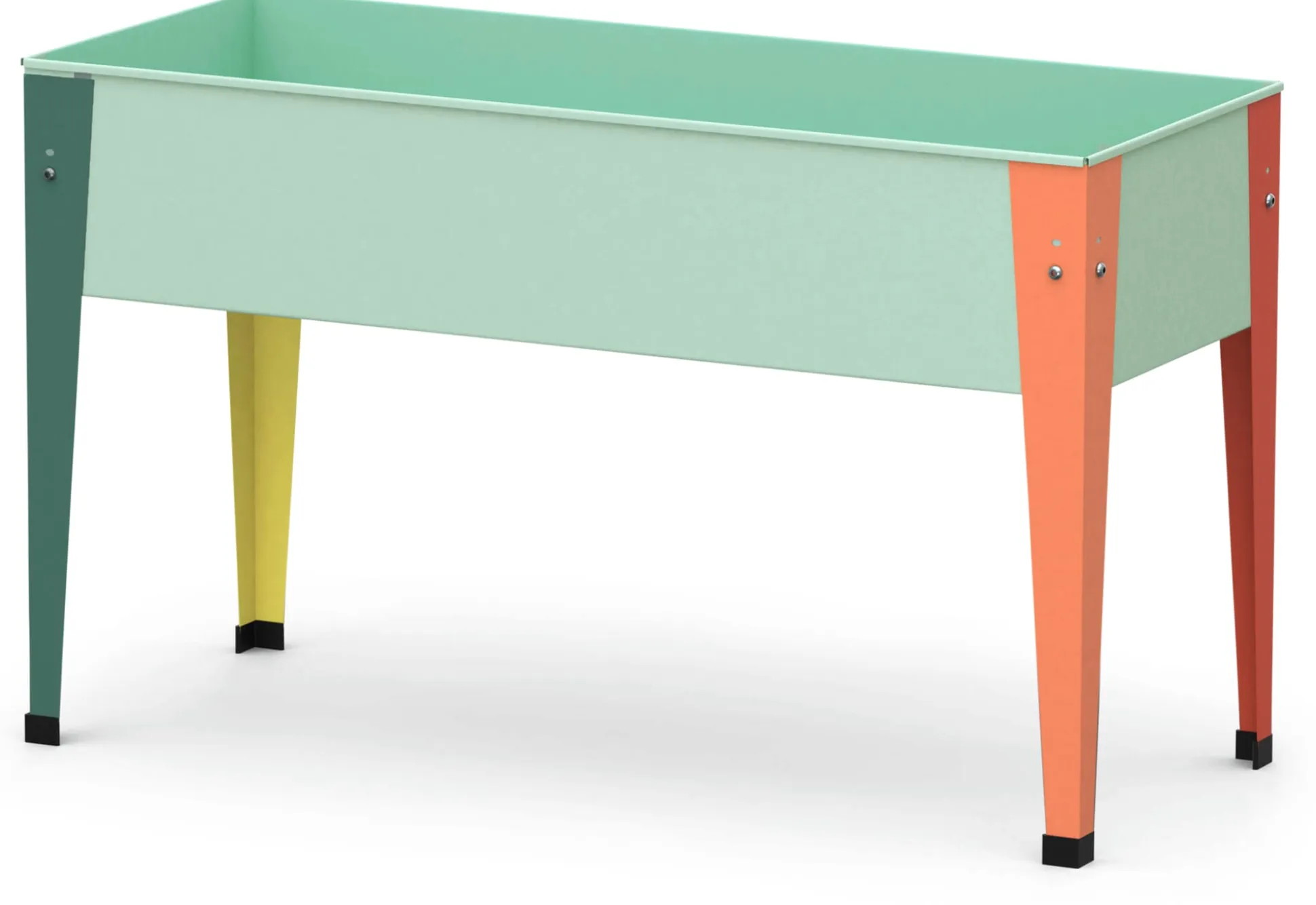Die Wanne dieses farbenfrohen Hochbeets aus verzinktem und pulverbeschichtetem Stahl befindet sich in kindgerechter Arbeitshöhe und ermöglicht sogar auf Balkon und Terrasse die Bewirtschaftung eines eigenen Gemüsegärtchens. Der Boden senkt sich zur Mitte hin leicht ab, sodass überschüssiges Wasser gut abfließen kann – etwas ungestüm gegossen wird doch immer einmal. Gartenwerkzeuge, (leere) Pflanztöpfchen und ein Eimer Gartenerde oder Kompost finden ihren Platz in dem Stauraum unter dem Hochbeet. Gute Laune garantiert: Die strahlenden Farben sind auch in den sonst eher kahlen, lichtarmen Wintermonaten zierend.