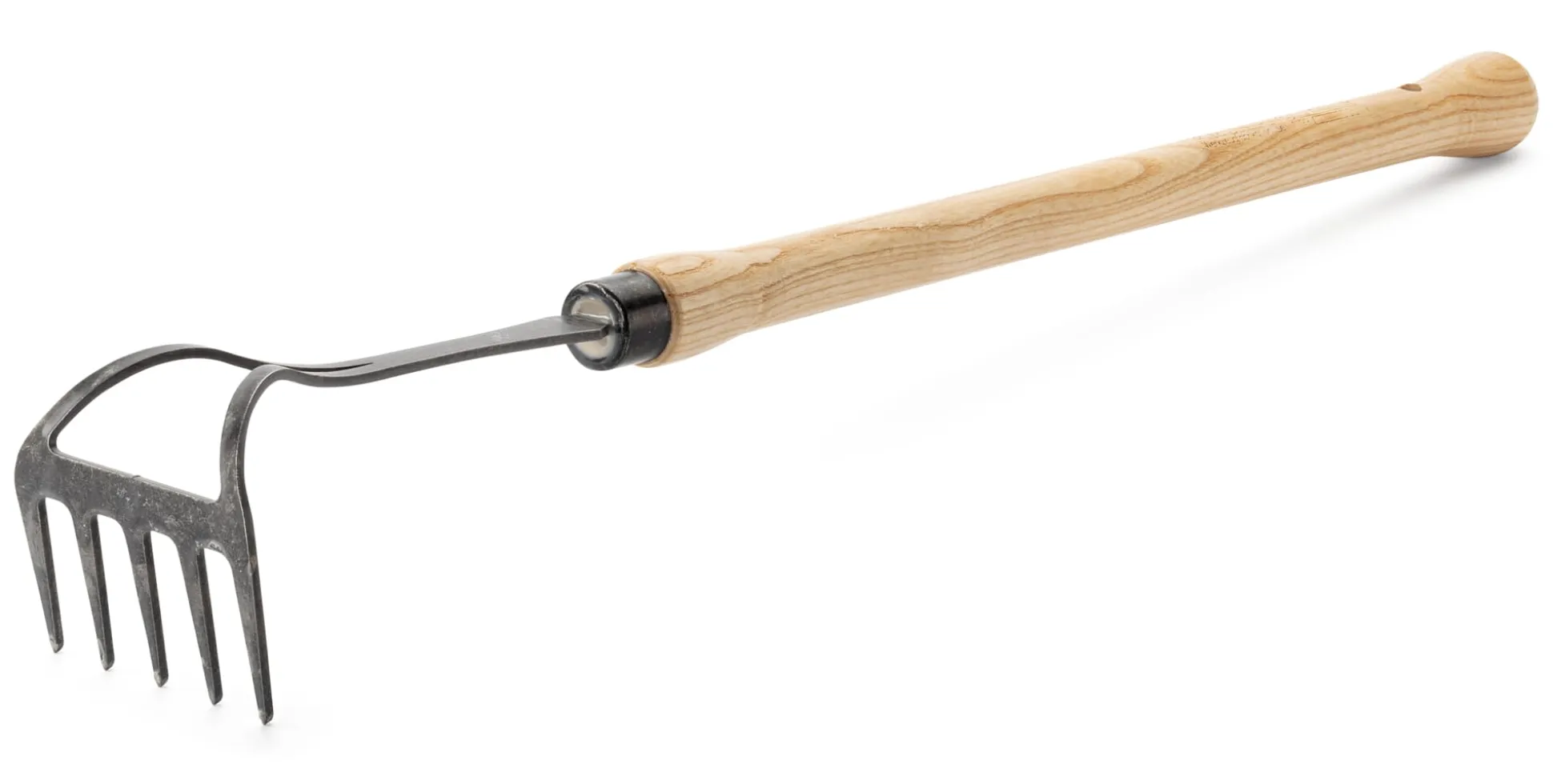 Werkzeugkopf mit geschmiedeten Zinken aus Mangan-Bor-Stahl. Stiel Eschenholz lackiert.