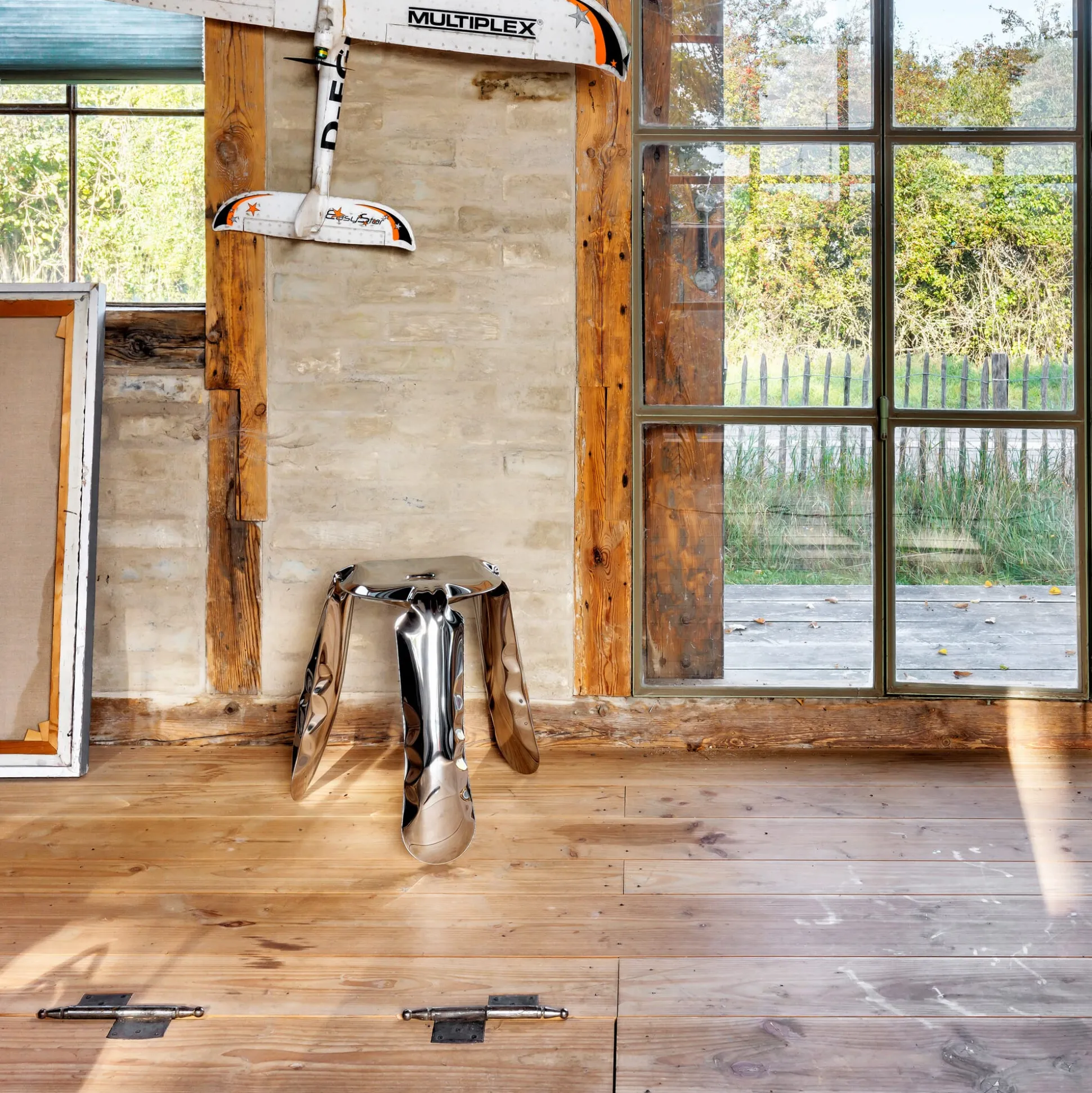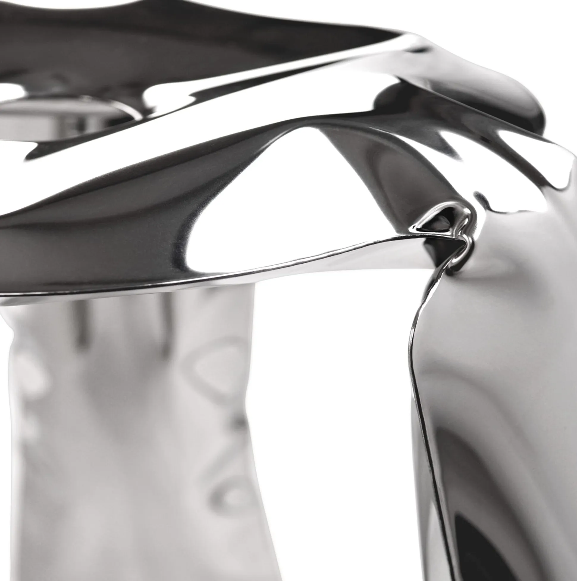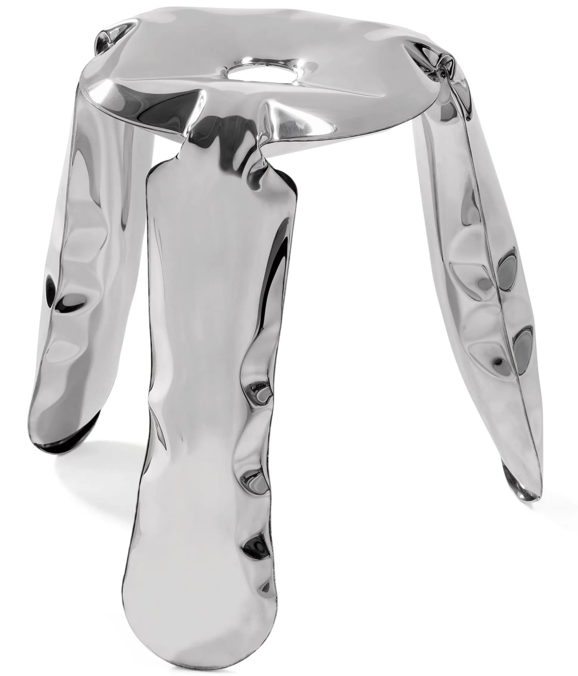 PLOPP wird mit einer spektakulären Technik produziert: die sogenannte FIDU (Freie Innendruckverformung), erfunden vom Architekten Oskar Zieta während seiner Zeit an der ETH in Zürich. Zwei an den Kanten verschweißte, hauchdünne Stahlplatten werden mit Luftdruck aufgeblasen. Jede der sich so bildenden Form in diesem hochglänzenden Material ist ein faszinierendes Einzelstück, leicht voneinander abweichend.