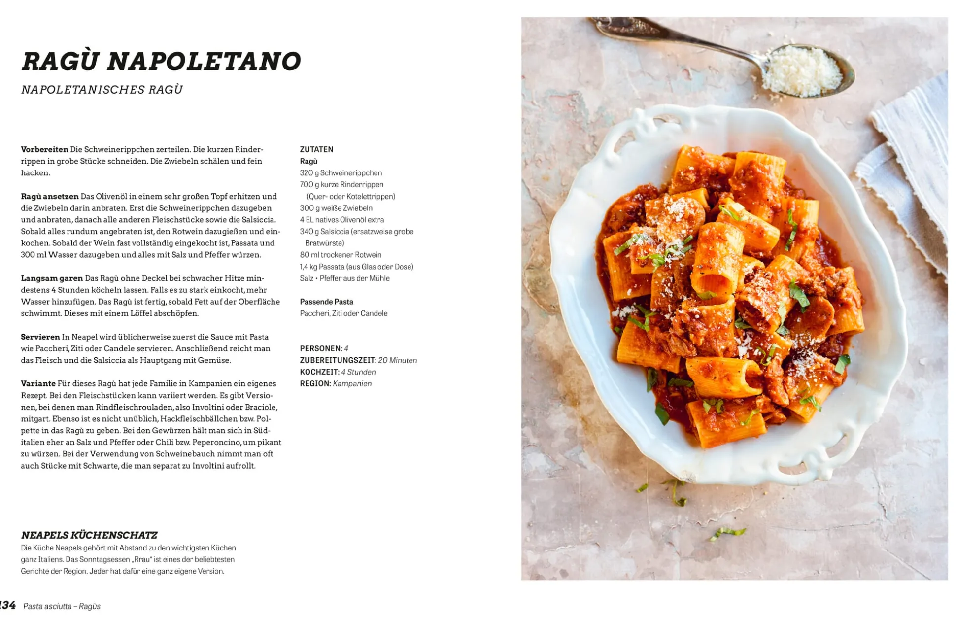 Als contorni – Beilage – zu den Rezepten und praktischen Informationen in der Pasta-Schule serviert Domenico atmosphärische Reisefotos und spannende Geschichten rund um die Nudel: Er besucht Pasta-Feste und Nudel-Hotspots, z.B. das Tortellini Fest in Mantova, di Sagra delle Orecchiette in Bari und natürlich Gragnano, die Hauptstadt der Pasta. Er holt sich Tipps von Experten in Manufakturen und entlockt Hausfrauen ihre Geheimrezepte. Besser kann man Pasta nicht genießen!