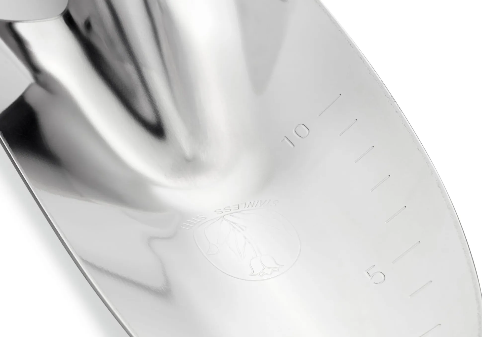 Die Blumenkelle, die Sie getrost über Nacht draußen vergessen können. Sie kommt aus Japan und wird dort in Form gebogen. Das Material der Wahl zu diesem Zweck ist Edelstahl, der in einem ersten Arbeitsschritt zu Bogen angemessener Dicke verpresst wird: insgesamt ein heute seltenes Verfahren, dem aber das wetterfeste Handwerkzeug seine Stabilität und Verwindungssteifigkeit verdankt. Mit anderen Worten: Diese Blumenkelle verbiegt sich selbst unter dem Druck harter Böden kaum, noch weniger kann sie dabei entzwei gehen. Denn da sie aus einem Stück gefertigt ist, entfällt auch die bei solchen Blumen- oder Pflanzkellen allzu oft übliche Schwachstelle zwischen Griff und angesetztem Blatt. So erledigt dieses handliche, leichte Werkzeug sämtliche ihm zugedachten Aufgaben spielend. Es hilft Ihnen dabei, Pflanzlöcher für Gemüsejungpflanzen und Sommerblumen auszuheben, es unterstützt Sie beim Setzen von Blumenzwiebeln und zeigt dabei dank der auf das Blatt aufgebrachten Zentimeterskala sogar die Pflanztiefe an. Selbstverständlich können Sie diese Blumenkelle ebenso gut bei der Pflege von Topf- und Kübelpflanzen oder beim Ausbringen von Dünger, Rasenkalk, Gesteinsmehl & Co. verwenden. Einen weiteren Vorteil hat die beschriebene Art der Verarbeitung übrigens: Wo keine Lackierung, da kann auch nichts abplatzen (und eventuell rostgefährdete Stellen der Vergänglichkeit preisgeben).