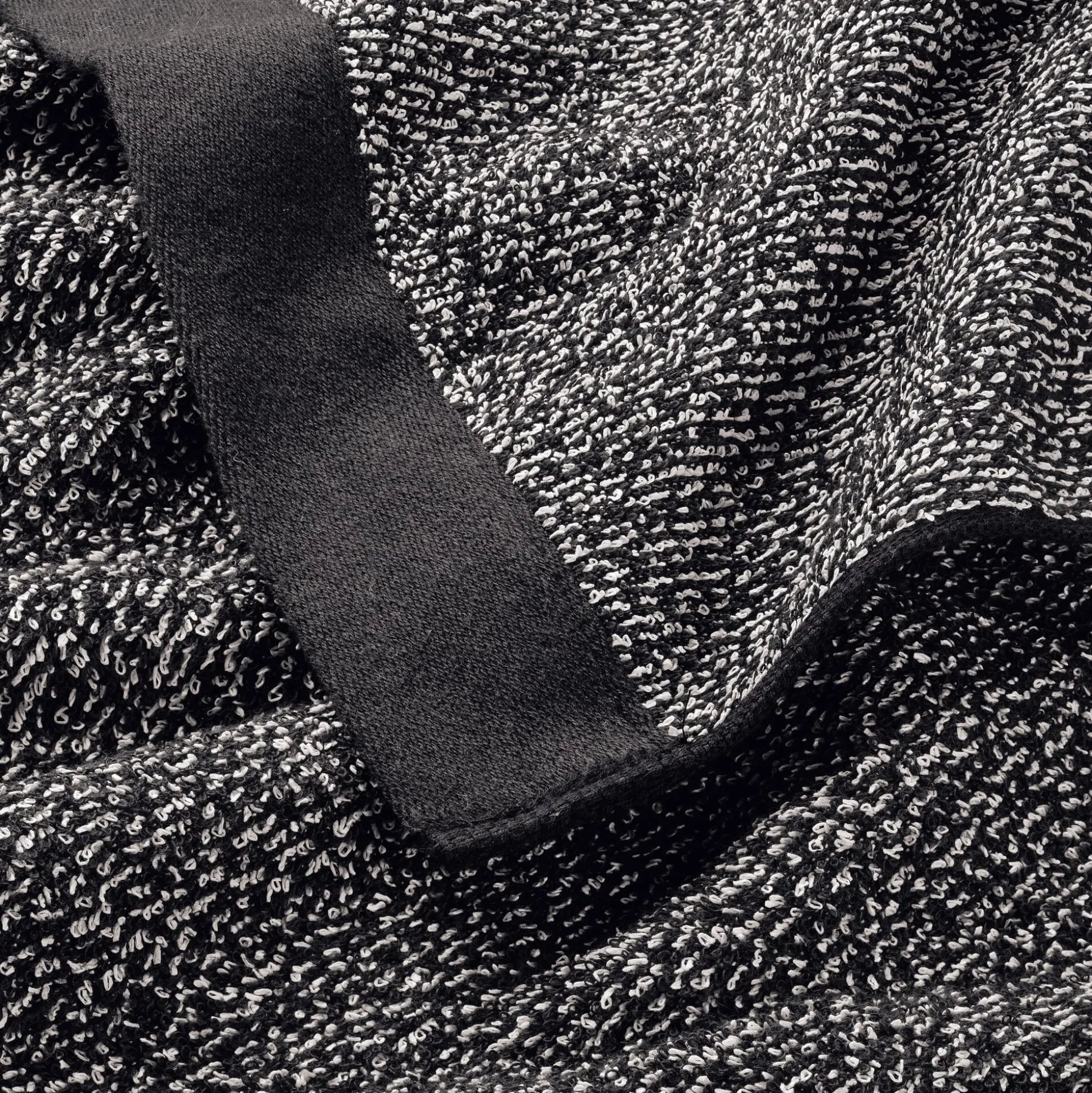 70% Baumwolle und 30% Papiergarn. Flächengewicht 360 g/qm. Hergestellt in Japan. Farbe Schwarz meliert.