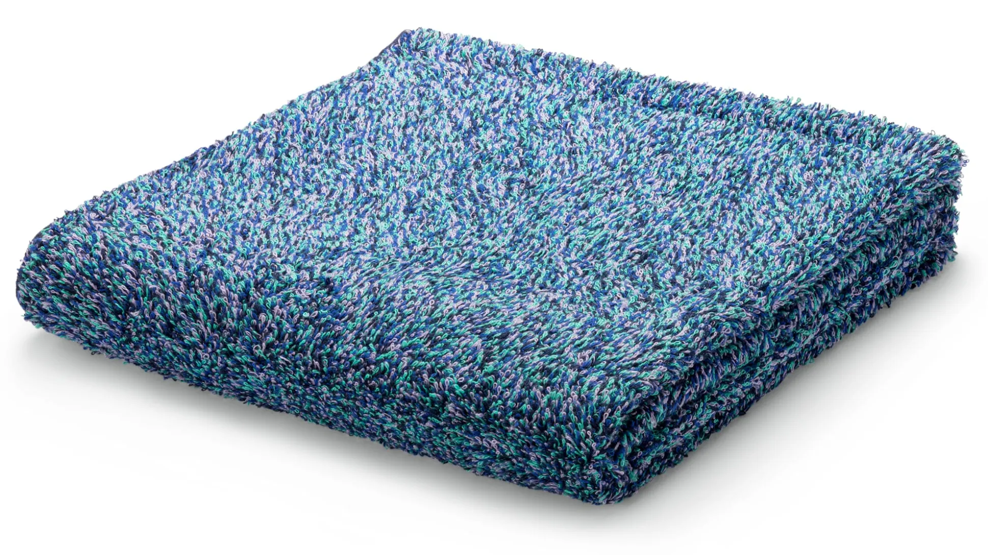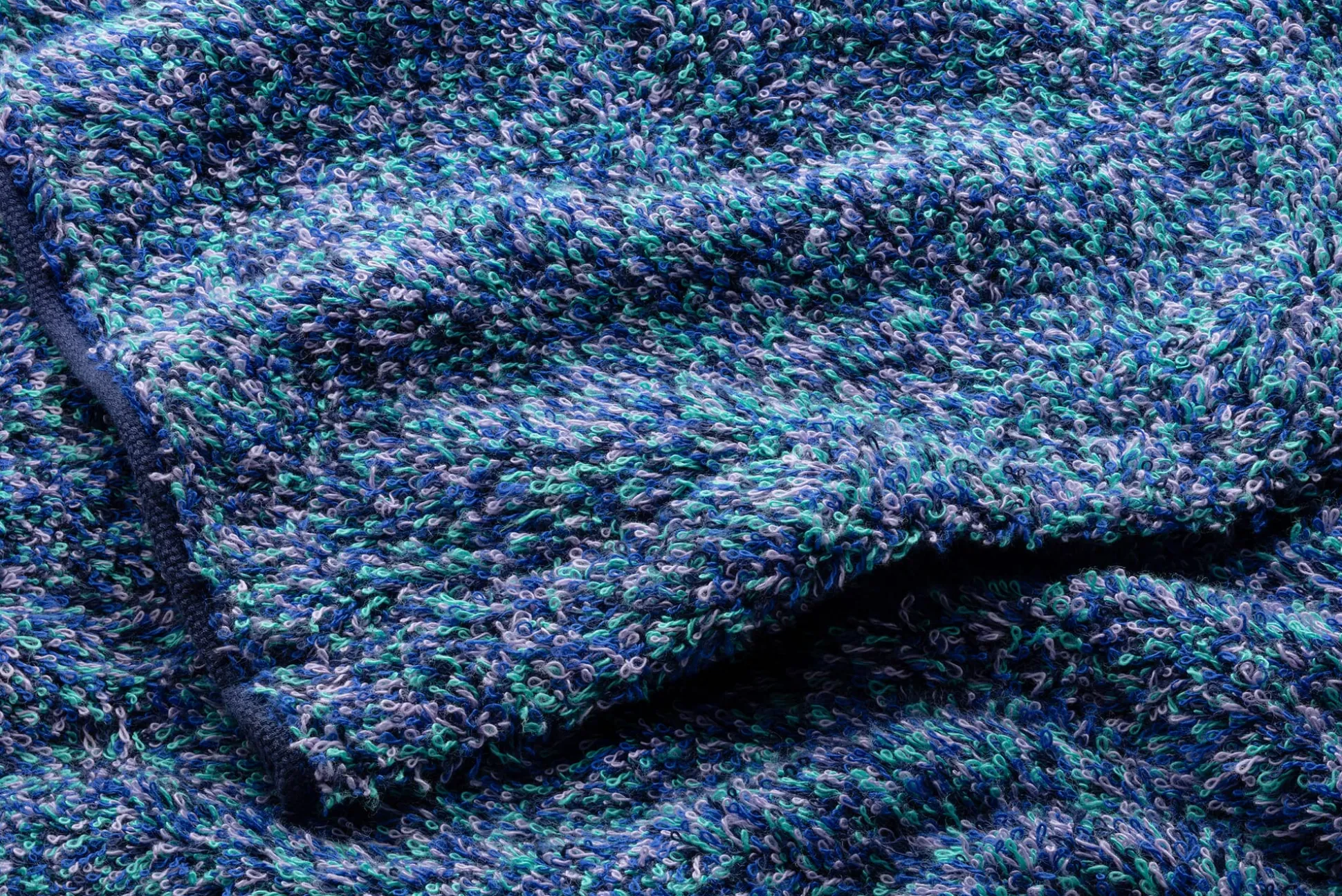 Das Besondere dieser Frottiertücher aus Baumwolle zeigt sich auf den ersten Blick: Die langen Schlingen des Frottiergewebes sind in vier verschiedenen Farben gehalten. Echtes Frottier ist ohnehin etwas aufwendiger in der Herstellung, weil mit drei Fadensystemen (Kett-, Schuss- und Schlingfaden) gewebt wird. Für die Mehrfarbigkeit der Schlingen braucht es daher zusätzlich vier unterschiedlich gefärbte Garne.