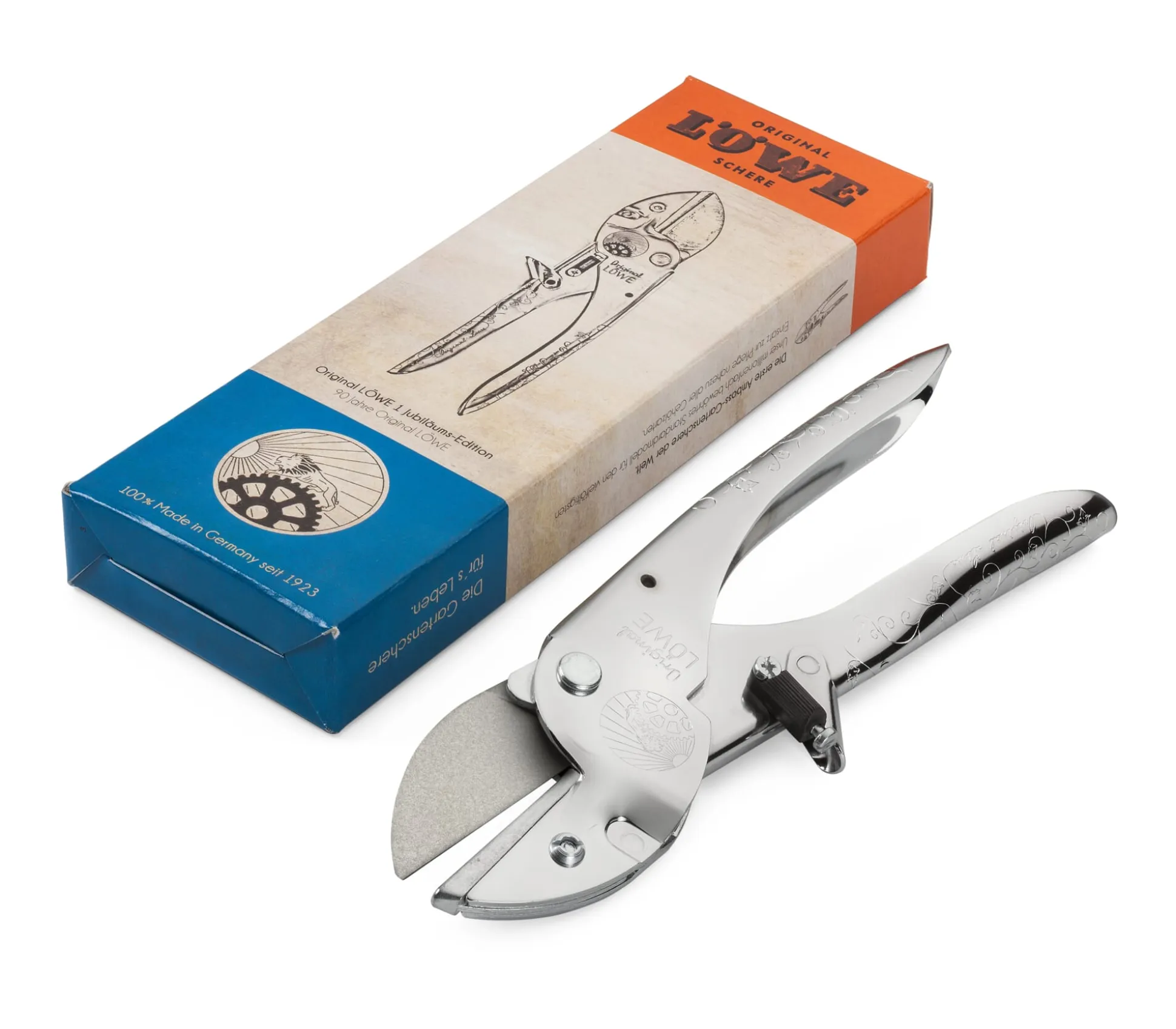 Die Idee kam vor vielen Jahren von uns: Spendierte man der bewährten Löwe-Ambossschere der Gebr. Schröder GmbH in Kiel eine Prägung, so wäre sie griffiger und noch besser als ohnehin. Das 90-jährige Jubiläum der Ambossschere war dem Hersteller, der auf über 150 Jahre Firmengeschichte zurückblickt, Anlass genug, seinen berühmten Klassiker mit eingeprägtem Rankenmuster aufzulegen. Tatsächlich rutscht da nichts, die Griffe liegen fest in der Hand, das Arbeiten geht leicht und gut.