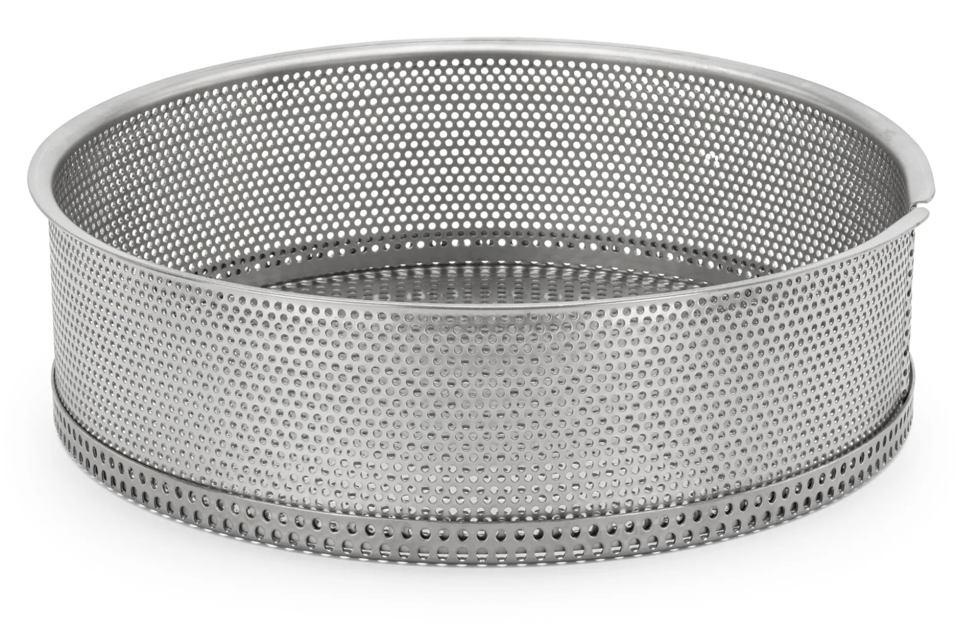 Außen Ø 25,2 cm, Höhe 7 cm. Innen Ø 24 cm, Höhe 6,5 cm. Höhe Boden 1,3 cm. Perforierung Rand Ø 2 mm, Boden Ø 3 mm. Gewicht 700 g.