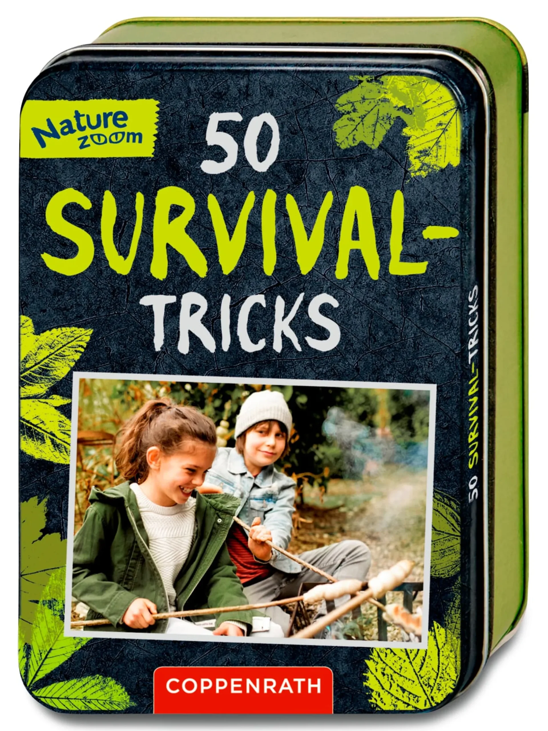 Mit hilfreichen Informationen und Tipps geben diese Karten Antworten und Anregungen. Praktisch und anschaulich führen die zahlreichen farbigen Illustrationen und Schritt-für-Schritt-Anleitungen durch unsere spannende Welt. Und mag die Herausforderung auch noch so groß sein, junge Forscher*innen und Entdecker*innen müssen sich nicht einmal um das Überleben dieser Ausrüstung sorgen: Die stabilen Karten sind abwischbar, sodass ihnen der übliche Abenteuerschmutz so schnell nichts ausmacht, und werden zusätzlich in der robusten Blechdose gut geschützt.