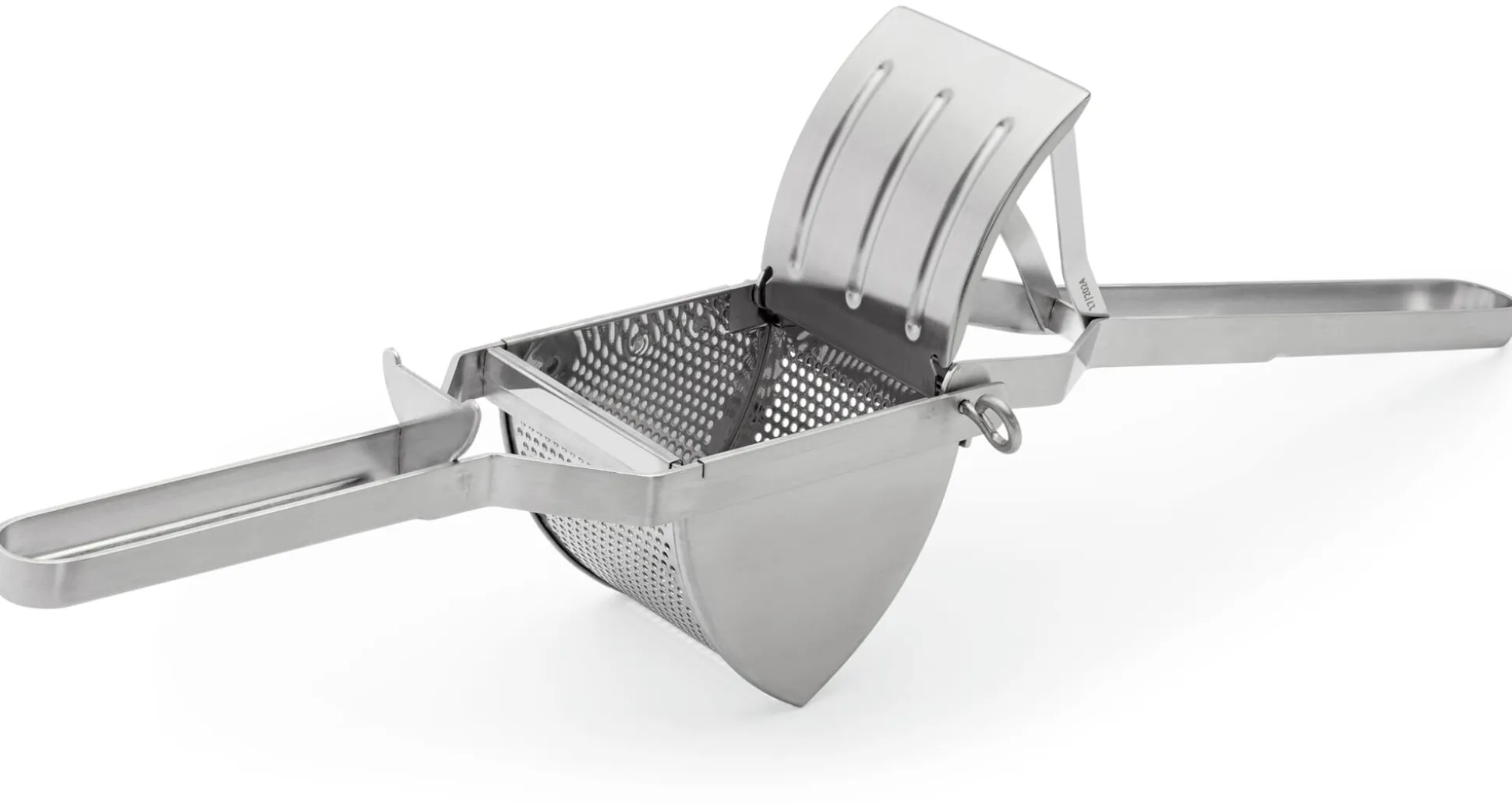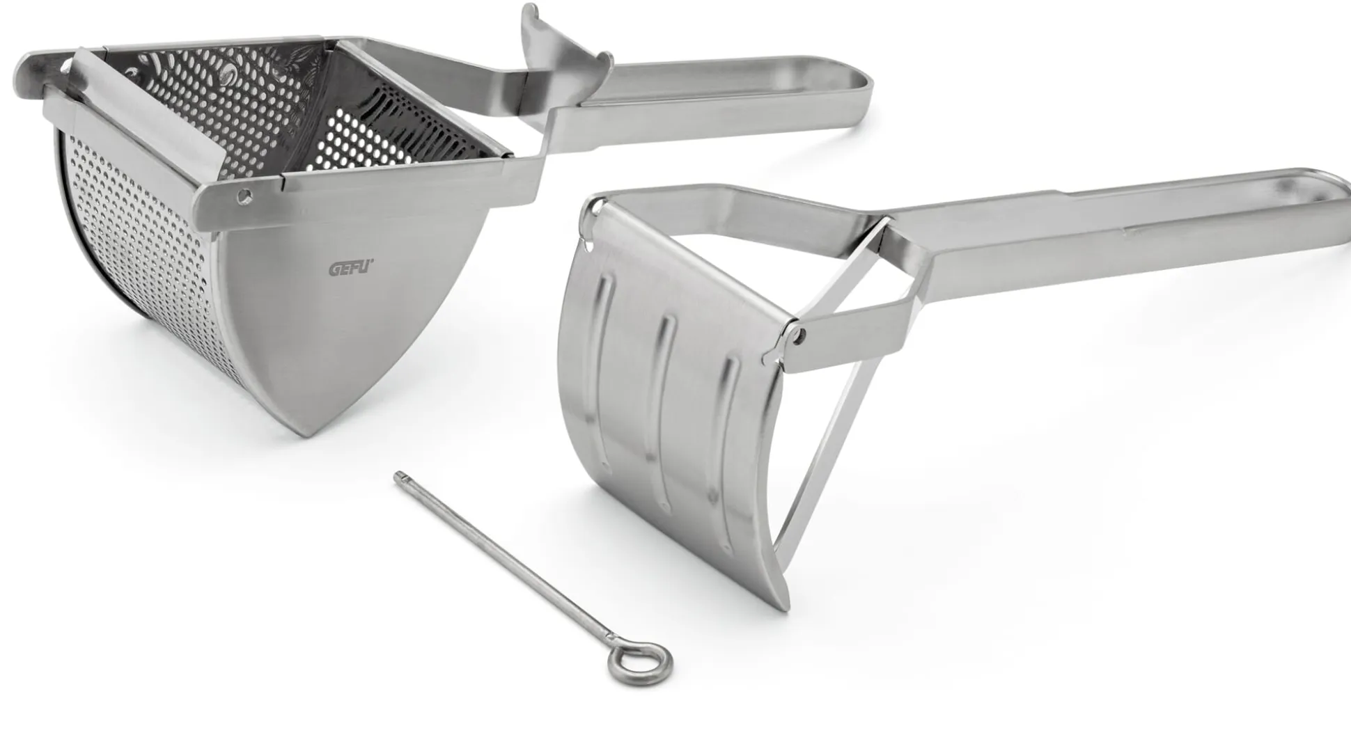 Für Kartoffelpüree: eine robuste und in ihrer Funktion sehr bewährte Kartoffelpresse ganz aus Edelstahl. Zur Reinigung können die beiden Teile einfach auseinandergenommen und genauso leicht wieder zusammengefügt werden. Für die Spülmaschine geeignet.