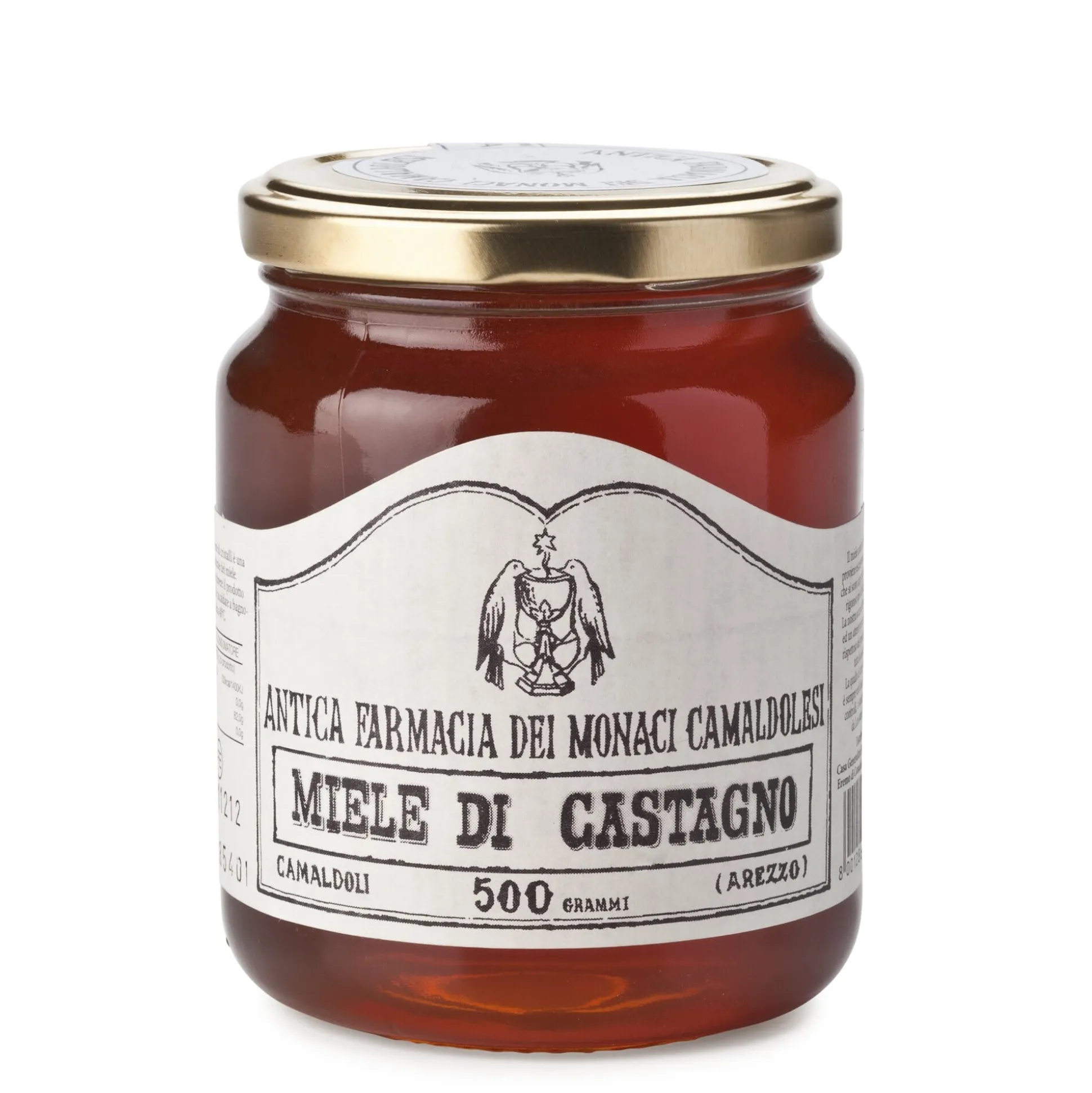 Eine ganze Reihe von Bäumen liefert Honig, darunter auch die Edelkastanie. Dieser kräftige, goldbraune Honig ist eine seltene Spezialität, die hier von den Camaldulensermönchen in Italien kommt.