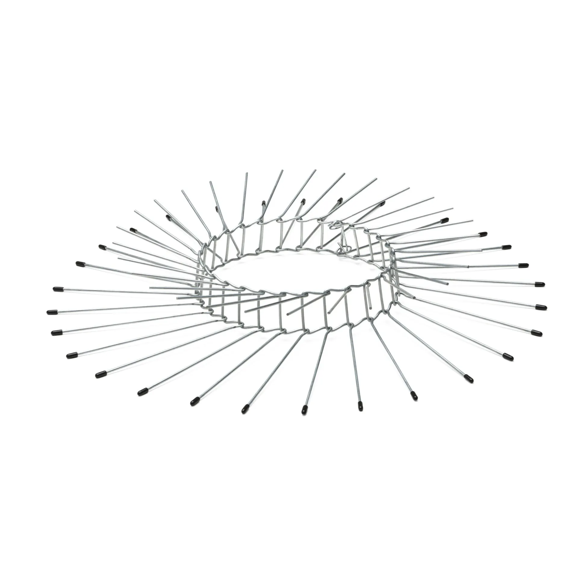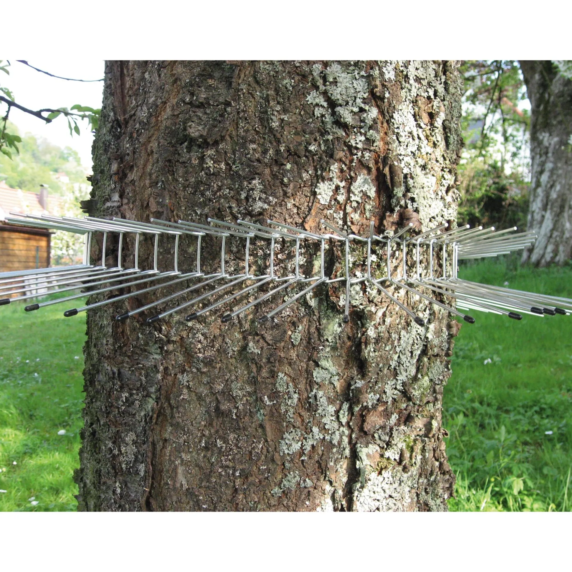 Ist eine Katze in ihrem Revier unterwegs, bedeutet das für brütende Vögel oft enormen Stress und eine permanente Bedrohung des Nachwuchses. Dagegen hilft diese effektive Konstruktion: Als Manschette um den Baumstamm gelegt, verhindert der Katzenabwehrgürtel, dass Katzen den Baum erklimmen und ihren natürlichen Beutetrieb ausleben können. Die einzelnen Drahtelemente lassen sich ineinandergesteckt flexibel an den Baumumfang anpassen; auf die Spitzen werden Kunststoffkappen gesteckt, damit sich Katze und Mensch nicht verletzen können.