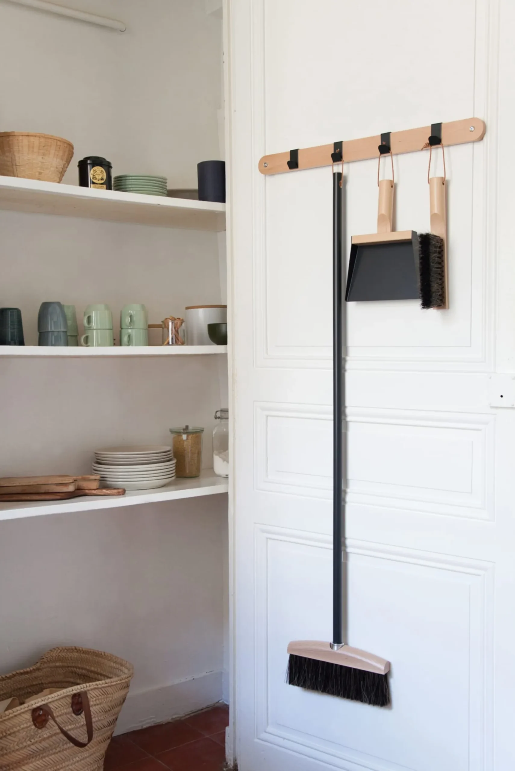 Passend zum Handfeger: in zeitgenössischer Gestaltung, gefertigt in der Bretagne. Der massive, zylindrisch geformte und gut zu handhabende Griff ist baugleich mit dem Griffteil des Handfegers. Mit Lederband zum Aufhängen.