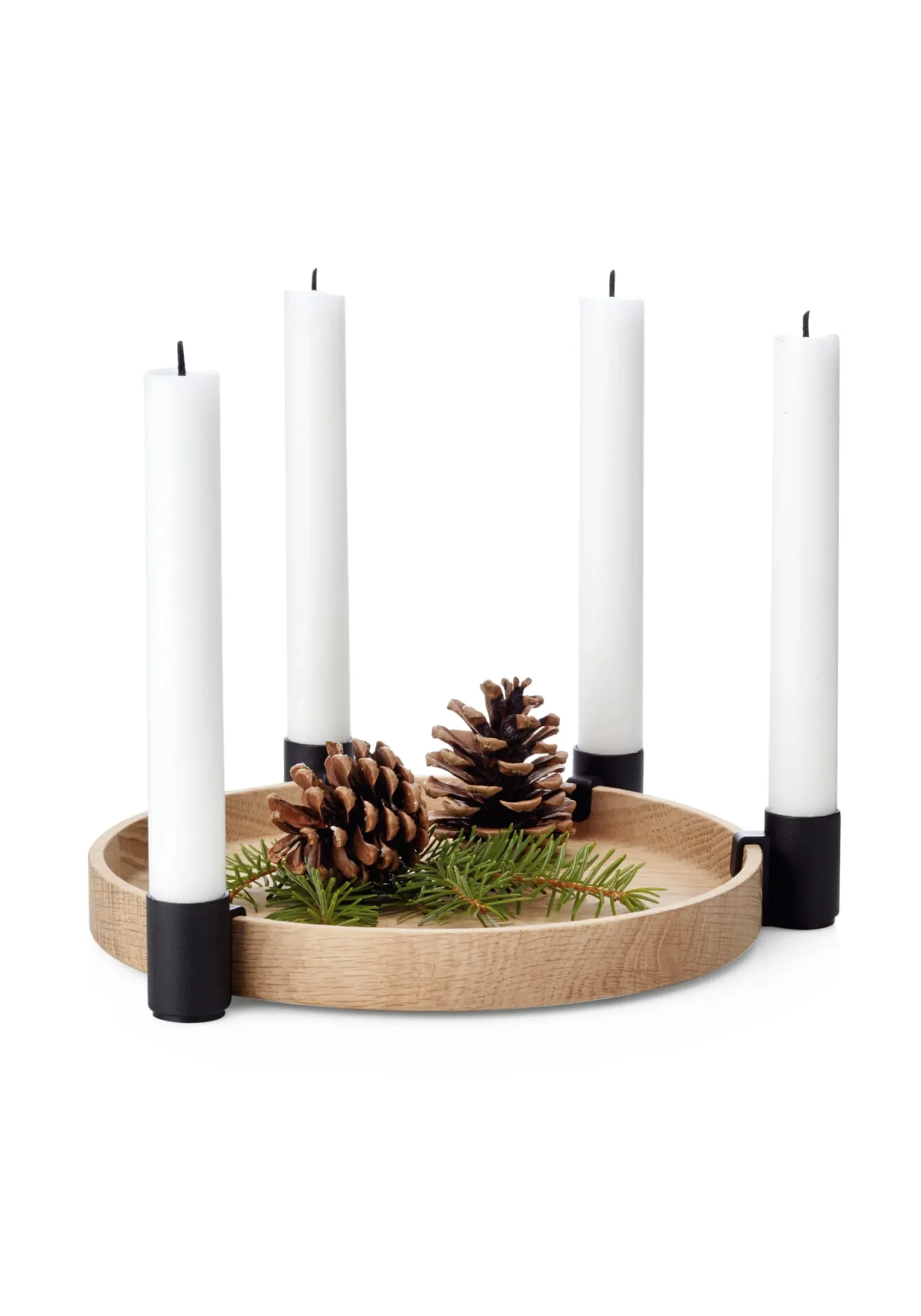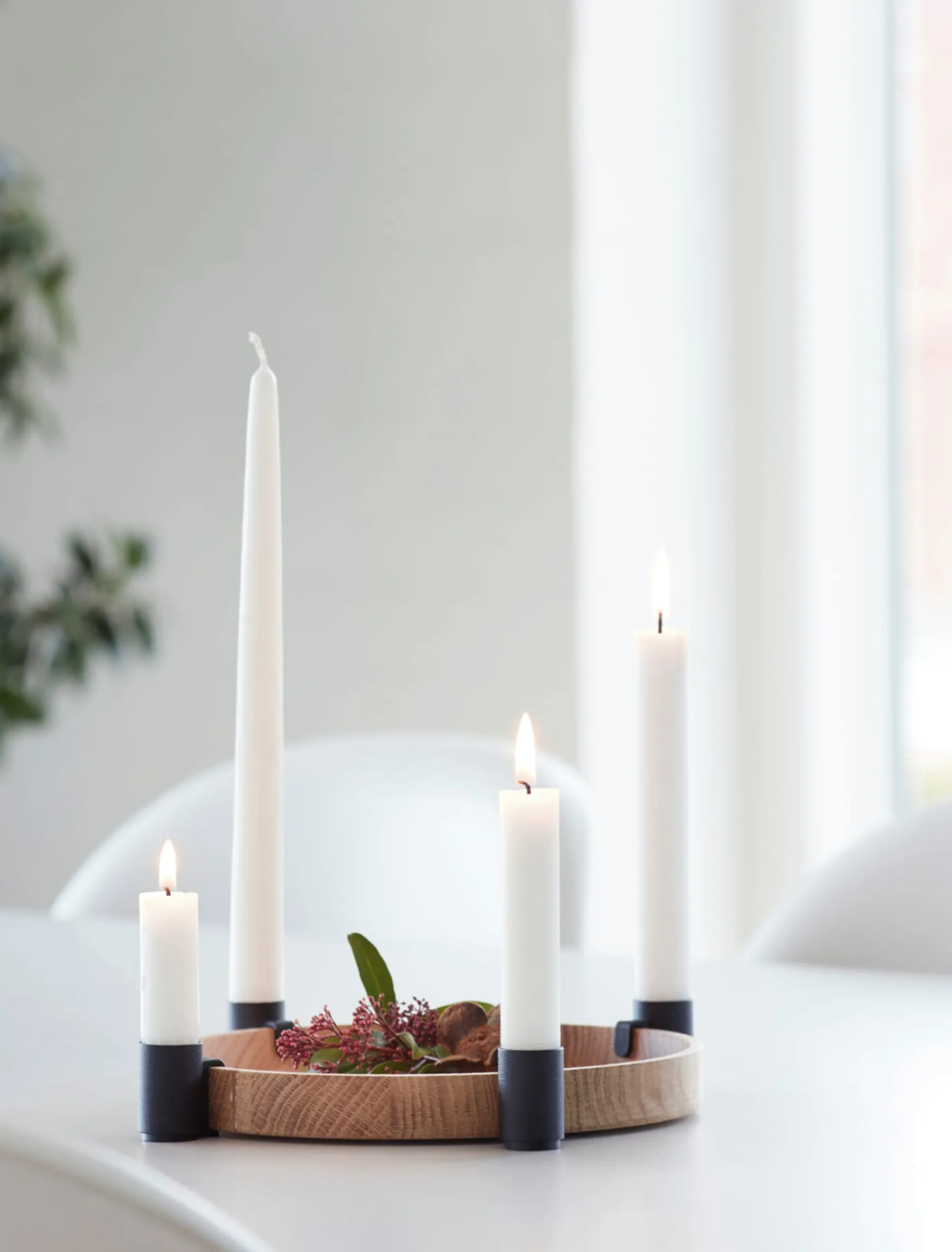 - Hölzernes Tablett mit an beliebiger Stelle ergänzbaren Kerzenhaltern