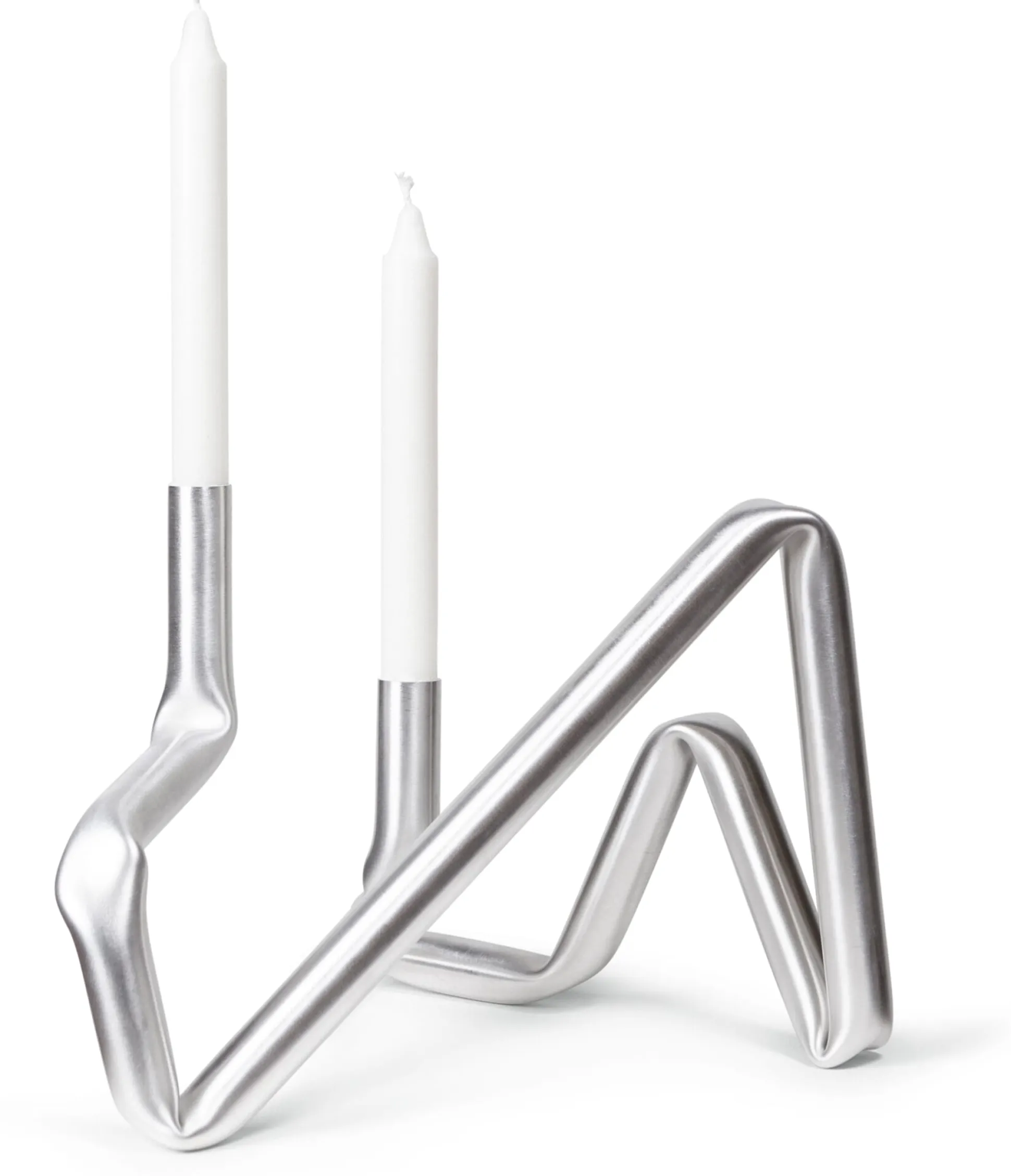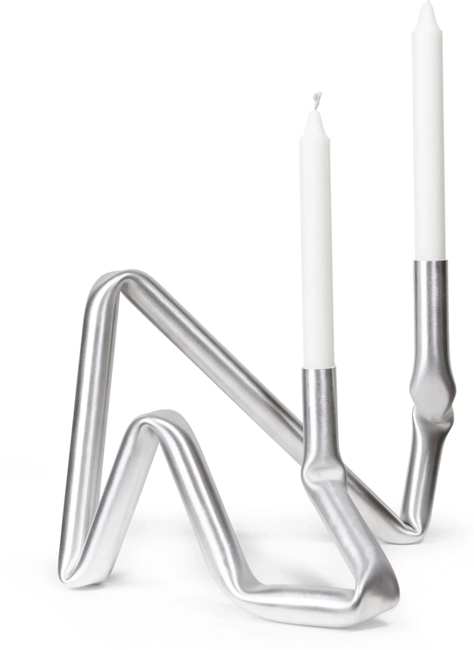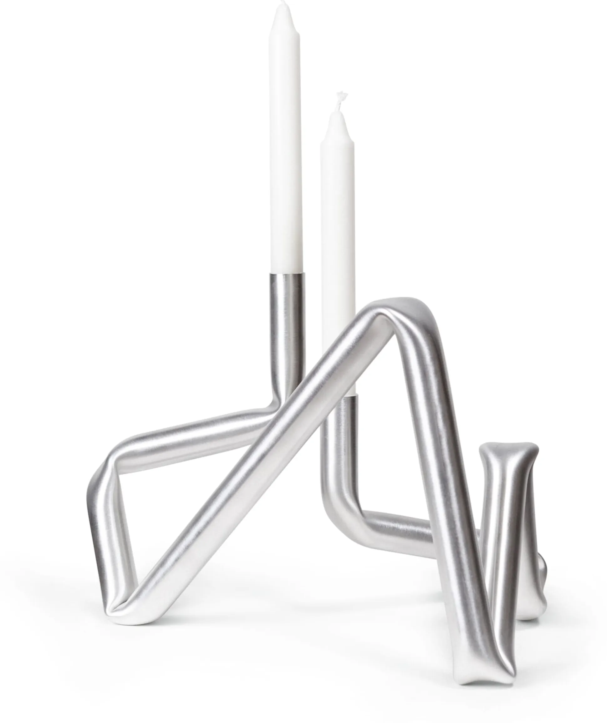 150 cm Aluminium-Rundrohr, erhitzt. Eine Biegeschablone und Krafteinwirkung. Mehr Worte braucht es eigentlich nicht, um diesen originären Kerzenhalter zu beschreiben. Zwei Kleinigkeiten vielleicht noch: Handgefertigt in Dänemark, unkonventionell und wunderbar ungeschönt.