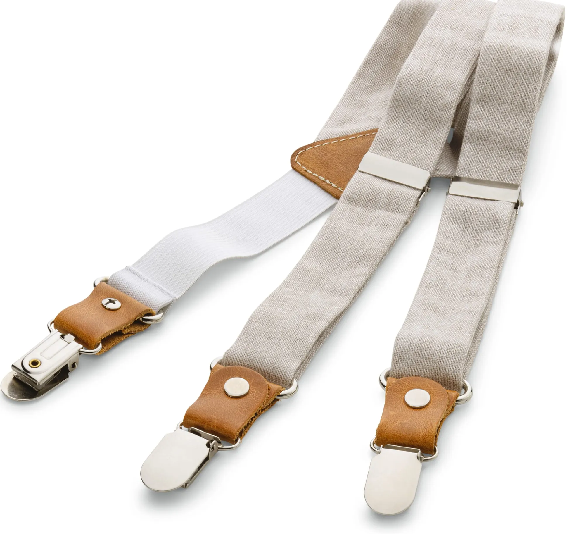 Hosenträger verleihen dem Outfit Ihres Kindes nicht nur dieses gewisse Etwas verwegener Lässigkeit, sie sind vor allem überaus praktisch. Auch wenn Ihr Sprössling ausgelassen Wald, Wiese und Welt erforscht, sorgen sie für den guten Sitz von Hose oder Rock. Damit die Hosenträger Ihr bewegungsfreudiges Kind weder bedrängen noch gar beengen, kommen diese mit Bändern aus reinem Leinen daher: kindgerecht strapazierbar und natürlich in der Länge verstellbar. Für die Patten wird robustes, vegetabil gegerbtes Rindleder verarbeitet, die silberfarbenen Metallclipverschlüsse – mit Kunststoffzähnen, um den Stoff zu schonen – halten die Hosenträger in bewährter Manier am Rock- oder Hosenbund. Dabei sorgt das rückseitige, solide Gummiband zusätzlich für hohen Tragekomfort – selbst beim Purzelbaum- und Radschlagen, Bocksprung oder Hindernislauf.