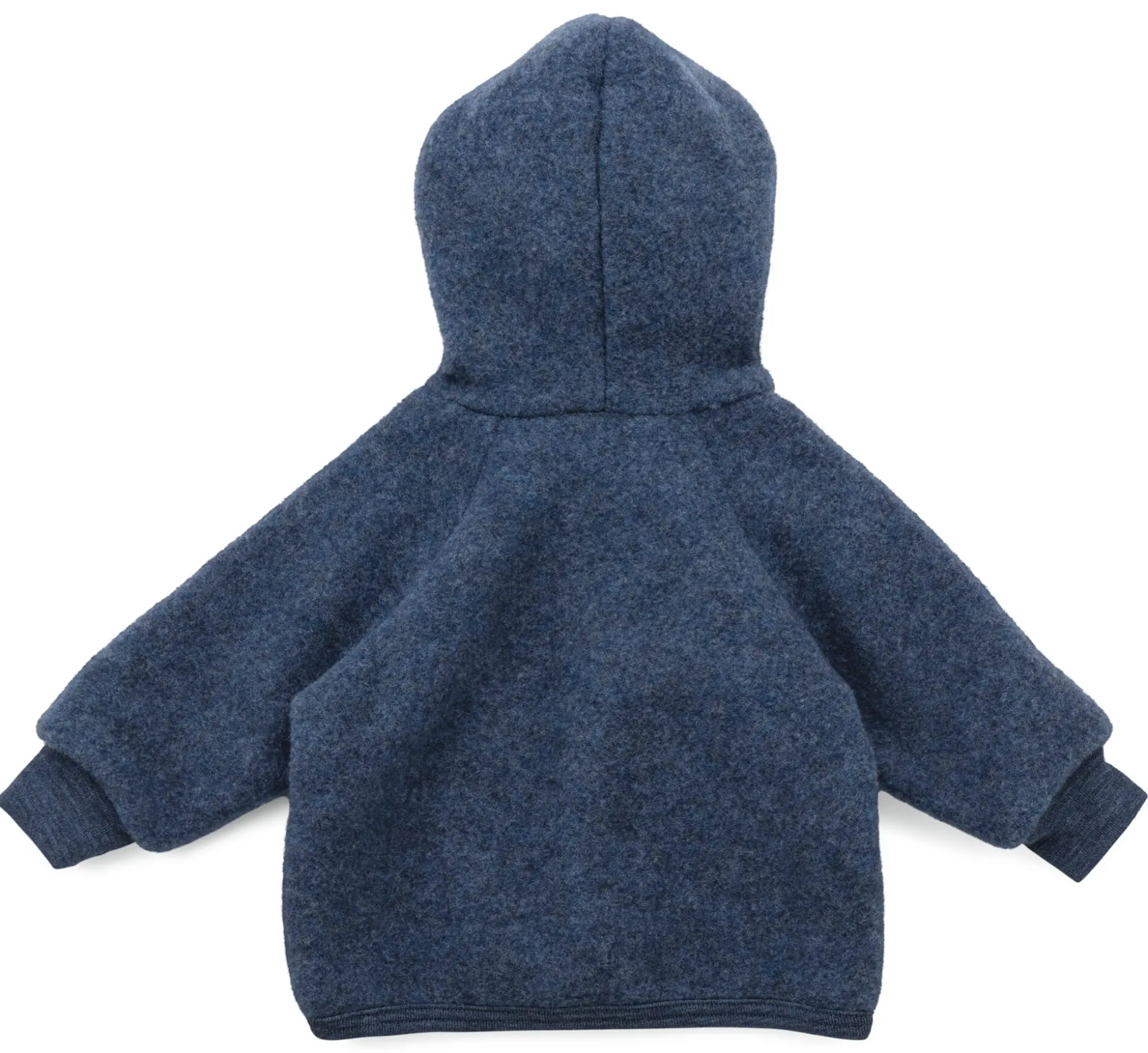 Denn die schmiegsame Merinowolle, die für die Kinder-Jacke verarbeitet wird, wirkt temperaturausgleichend – vor allem da der flaumweiche Fleece mit der charakteristischen angerauten Oberfläche aufwartet. Durch das Anrauen bauschen sich die feinen, gekräuselten Fasern der Merinowolle zu noch größerem Volumen auf und können deshalb noch besser wärmeisolierende Luft einschließen. Dadurch wird die natürliche klimaregulierende Wirkung der Schurwolle ebenso verstärkt wie ihre feine Weichheit. Kindgerecht ist die Jacke leicht überschnitten, in einem geraden, weiten Zuschnitt, sodass Ihr Sprössling ungehindert seinen natürlichen Bewegungsdrang ausleben kann. Bei allem Bewegungsspielraum sichern die verstärkten Säume die Formtreue, während breite Rippenbündchen an den Ärmeln für perfekten Sitz sorgen. Und die Knöpfe aus massivem Olivenholz setzen gleichsam das i-Tüpfelchen auf das Naturmaterial.