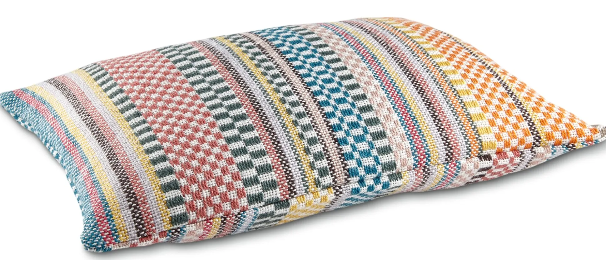 Farbenfroher Mustermix. Diese textile Kollektion für drinnen und draußen ist aus 100% recyceltem PET gewebt – schmutzabweisend und pflegeleicht. Das weiche Material und die frische Farbgebung sorgen für hohen Komfort und gute Laune. Das Material ist licht- und witterungsbeständig und bei 30° C in der Maschine waschbar. Alle Produkte der Kollektion werden fair produziert und unter Einhaltung von sozialen Standards in Indien handgearbeitet. Von den Lizenzgebühren für das GoodWeave-Gütesiegel werden unter anderem Sozial- und Bildungsprogramme in Indien und Nepal finanziert.
