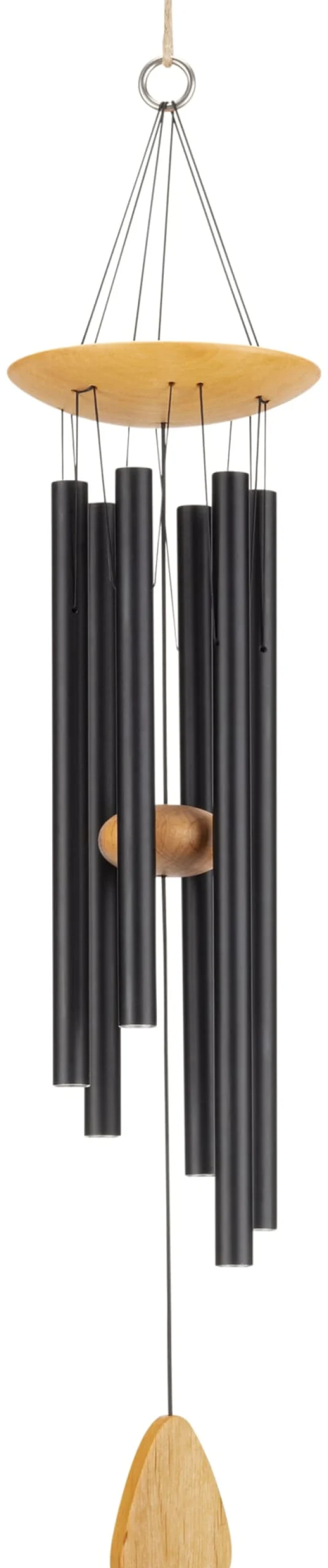Harmonische Klänge wirken ausgleichend und entspannend auf Körper und Geist, auf Seele und Lebensenergie – Strömungen wie das chinesische Feng Shui, die moderne Musiktherapie oder auch Yoga und Meditation schätzen die unterstützende Begleitung von Klang und Musik, um den Menschen mit sich und der Welt in Einklang zu bringen. Die Klangspiele unseres Herstellers erzeugen eine Klangfolge, die als besonders harmonisch und volltönend empfunden wird – trotz ihrer zufälligen Abfolge. Ob die Klangfolge durch den Wind oder durch Ihre Handbewegung verursacht wird, hängt naturgemäß davon ab, wo Sie das Klangspiel aufhängen. Unsere Klangspiele können auch im Freien montiert werden, am besten geschützt unter dem Dach der Terrasse oder Veranda. Denn zur handwerklichen Präzision gesellt sich hier die Hochwertigkeit der Materialien: Die Klangröhren aus Aluminium sind witterungsbeständig und erzeugen dauerhaft einen sauberen, reinen, lang anhaltenden Klang. Auch die Holzelemente sind – wenn sie regelmäßig mit einem pflegenden Öl nachbehandelt werden – durchaus außentauglich, denn sie bestehen aus massivem, dreifach im Tauchbad geöltem Erlenholz, das zu den Hölzern mit der höchsten Wasserresistenz gehört. Nicht zuletzt fügt sich das Zusammenspiel von Massivholz und schwarz eloxiertem Aluminium in jedem Interieur ansehnlich ein, selbst wenn die Klangspiele gerade schweigen.