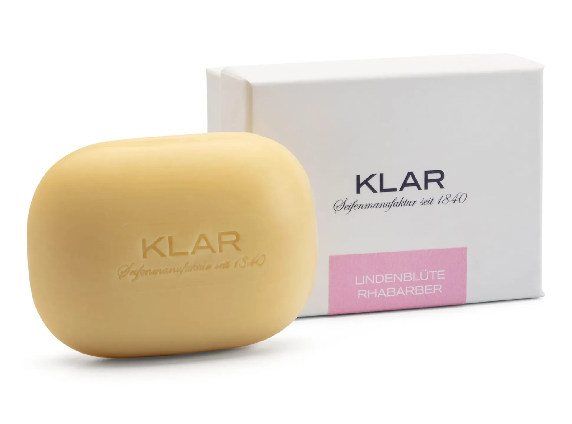 Klars Pflegeseife mit Lindenblüten hat Gründersohn Theobald Klar, der für seine Innovations- und Experimentierfreude bekannt war und auf den ein Großteil der Rezepturen zurückgeht, bereits 1912 kreiert. Heute verleiht ihr Rhabarber eine frische, fruchtig-herbe Note. Reinigt sanft, Lindenblütenwasser und Vitamin E beruhigen und pflegen besonders trockene und empfindliche Haut.