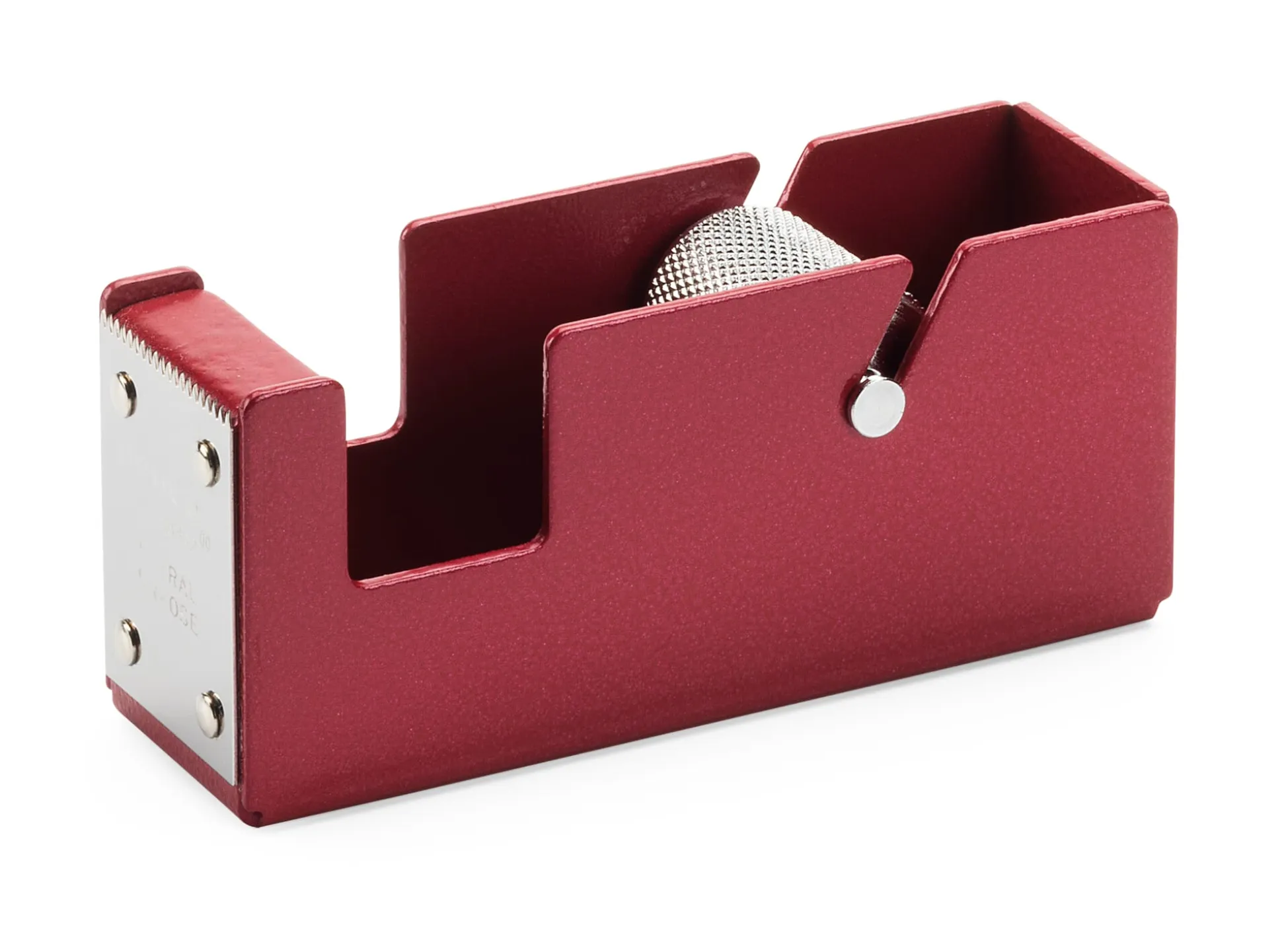 Klebebandabroller – amtlich: RORA klärt alle Fragen zur Ausführung und Stabilität von Klebebandabrollern, er ist standfest aus gekantetem und mit Industrielack bearbeitetem, 2 Millimeter starkem Stahlblech gefertigt. Mit massiver, gerändelter Walze und aufgeschraubter, gezahnter Abreißkante aus verchromtem Stahl. Innenliegende Lochbohrungen im Gehäuseboden zur vertikalen Montage an der Wand oder auf Arbeitsflächen.