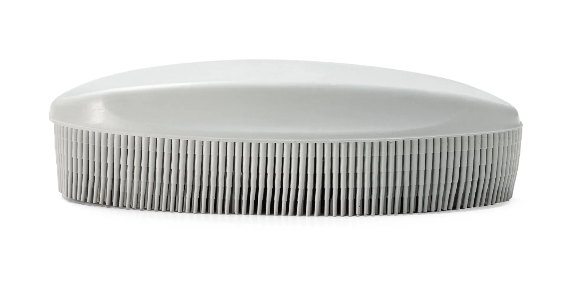 Hergestellt aus einem Stück Naturkautschuk: Handliche Kleiderbürste, die mit ihren V-förmigen, mittelfesten Gummiborsten Staub, Haare und Fussel elektrostatisch anzieht. Auch als Möbel- oder Tierbürste einsetzbar, zu reinigen unter fließendem Wasser.