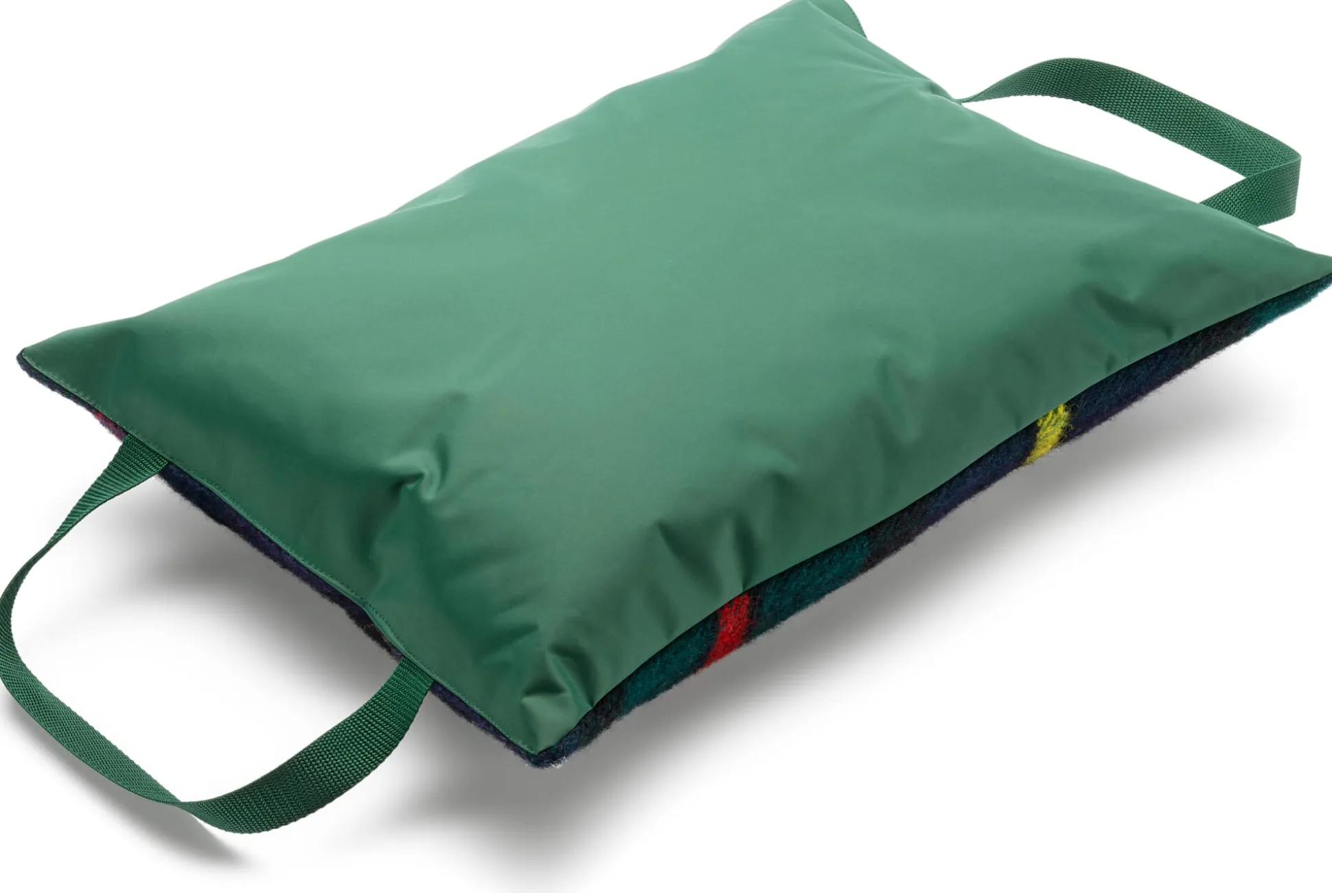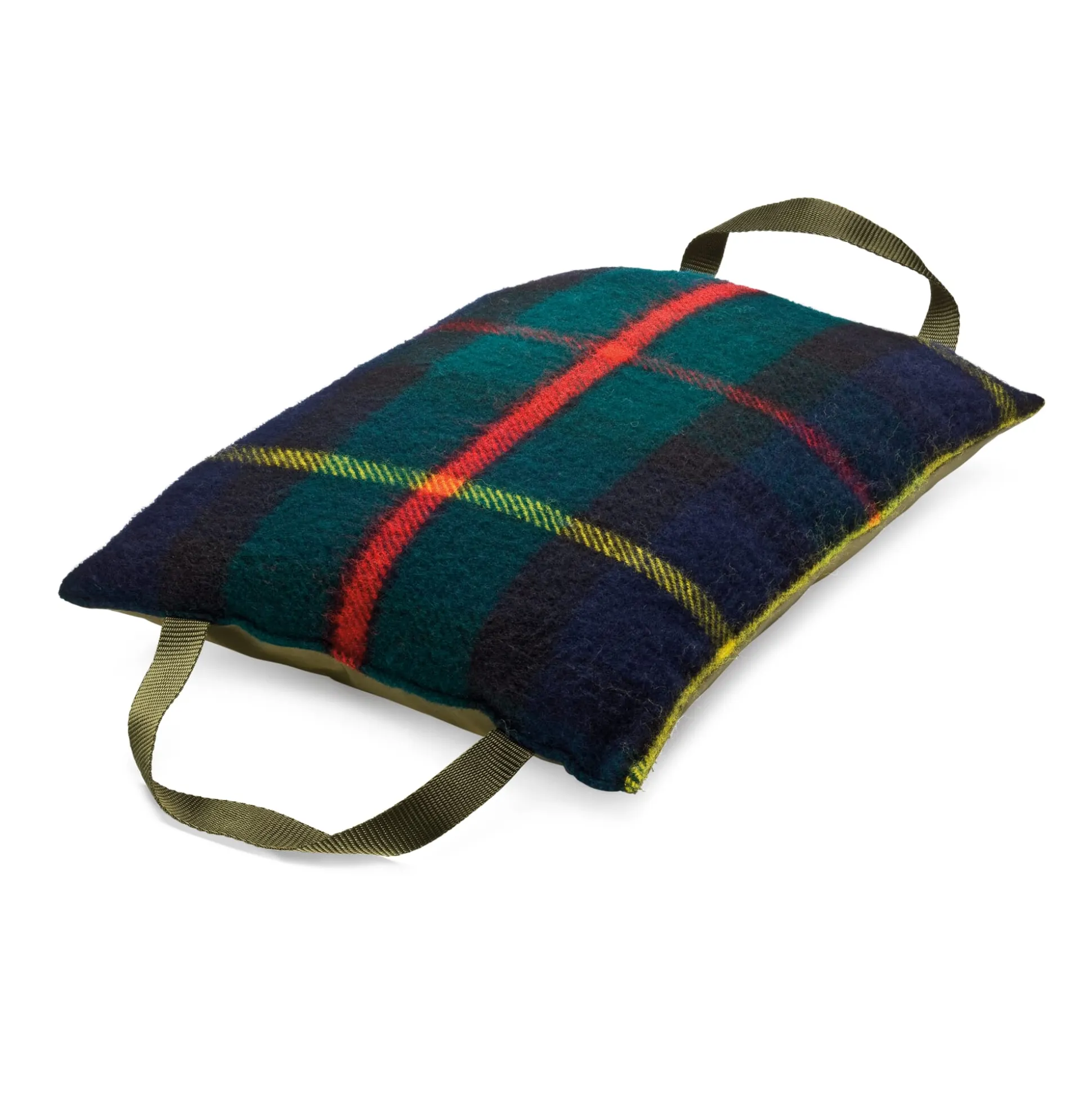 Mit zwei großen Trageschlaufen. Oberseite und Füllung 100% Wolle, Unterseite aus 100% Polyamid.