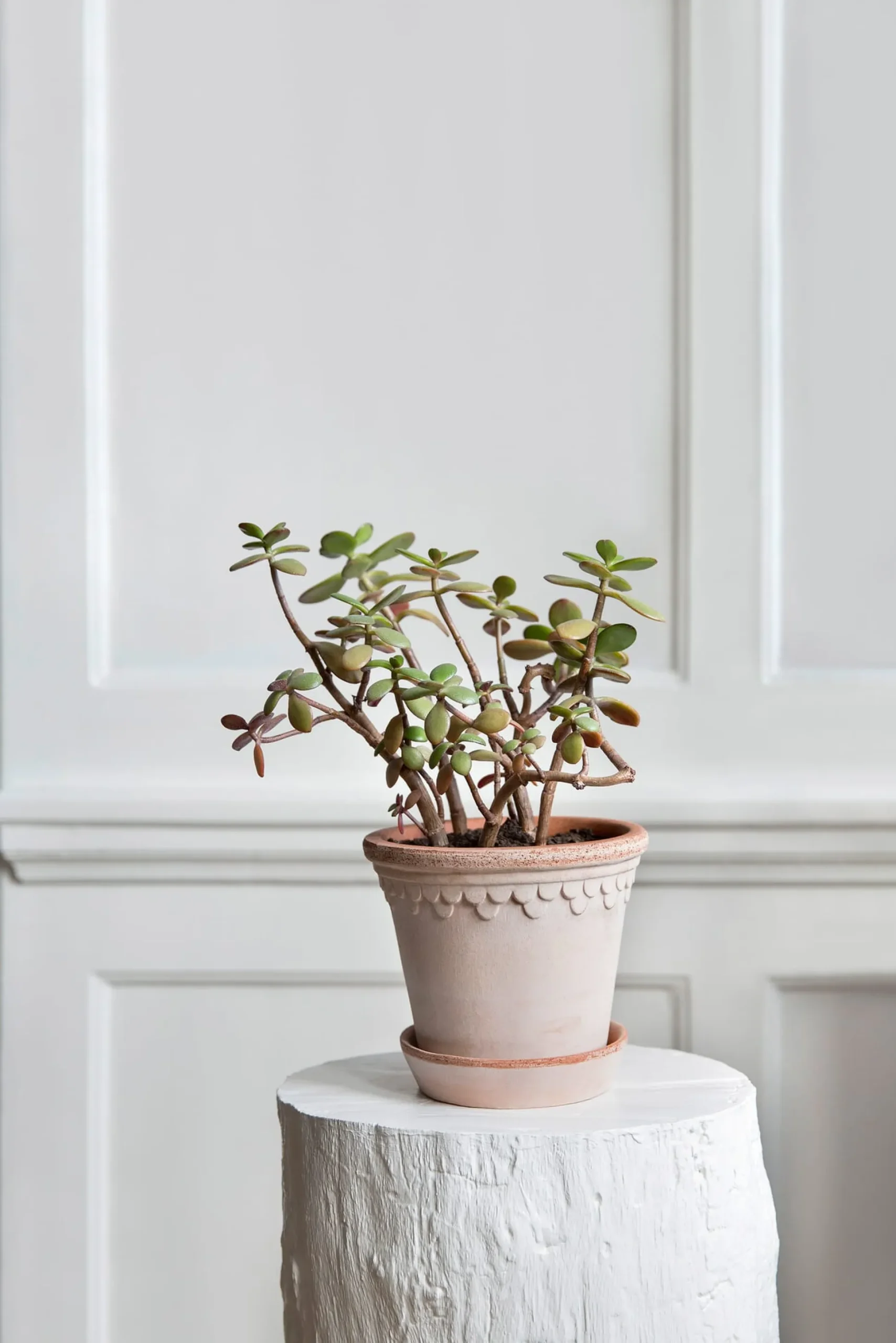 Königlichen Ursprungs ist der Entwurf, der den Københavener-Töpfen von Bergs Potter vorausging. Ähnliche Modelle gab es schon einmal um das Jahr 1860 herum. Sie stammten sämtlich aus dem „dänischen Versailles“, wie Schloss Fredensborg im Norden der Insel Seeland bis heute genannt wird. Friedrich der IV. von Dänemark und Norwegen ließ die Schlossanlage zwischen 1720 und 1722 als Sommerresidenz und Jagdschloss erbauen. Eine Töpferwerkstatt muss wohl zum königlichen Besitz gezählt haben. Steffen Berg, Bergs-Potter-Geschäftsführer der zweiten Familiengeneration, fand die historischen Pflanzgefäße durch Zufall in einem Gewächshaus einer aufgelassenen Gärtnerei und ließ sich zu einer Neuauflage nach eigenem, dezent modernisiertem Entwurf inspirieren. Besonders gelungen ist das zurückhaltende Schuppendekor. Wir schätzen diese Töpfe auch deshalb, weil der passende, aus demselben Ton getöpferte Untersetzer gleich mitgeliefert wird. Nicht nur, dass beide Teile zusammen ein harmonisches Gesamtbild ergeben – die Untersetzer helfen ebenso dabei, Gießwasser effizienter einzusetzen, da sie Überschüssiges auffangen und zur späteren Verwendung bereithalten. Bei den doch eher kleineren Topfgrößen ist das ein nicht zu unterschätzender Vorteil, gerade wenn die Gefäße draußen auf dem Balkon oder auf der Terrasse stehen, wo in warmen Sommern ohnehin häufiger gegossen werden muss.