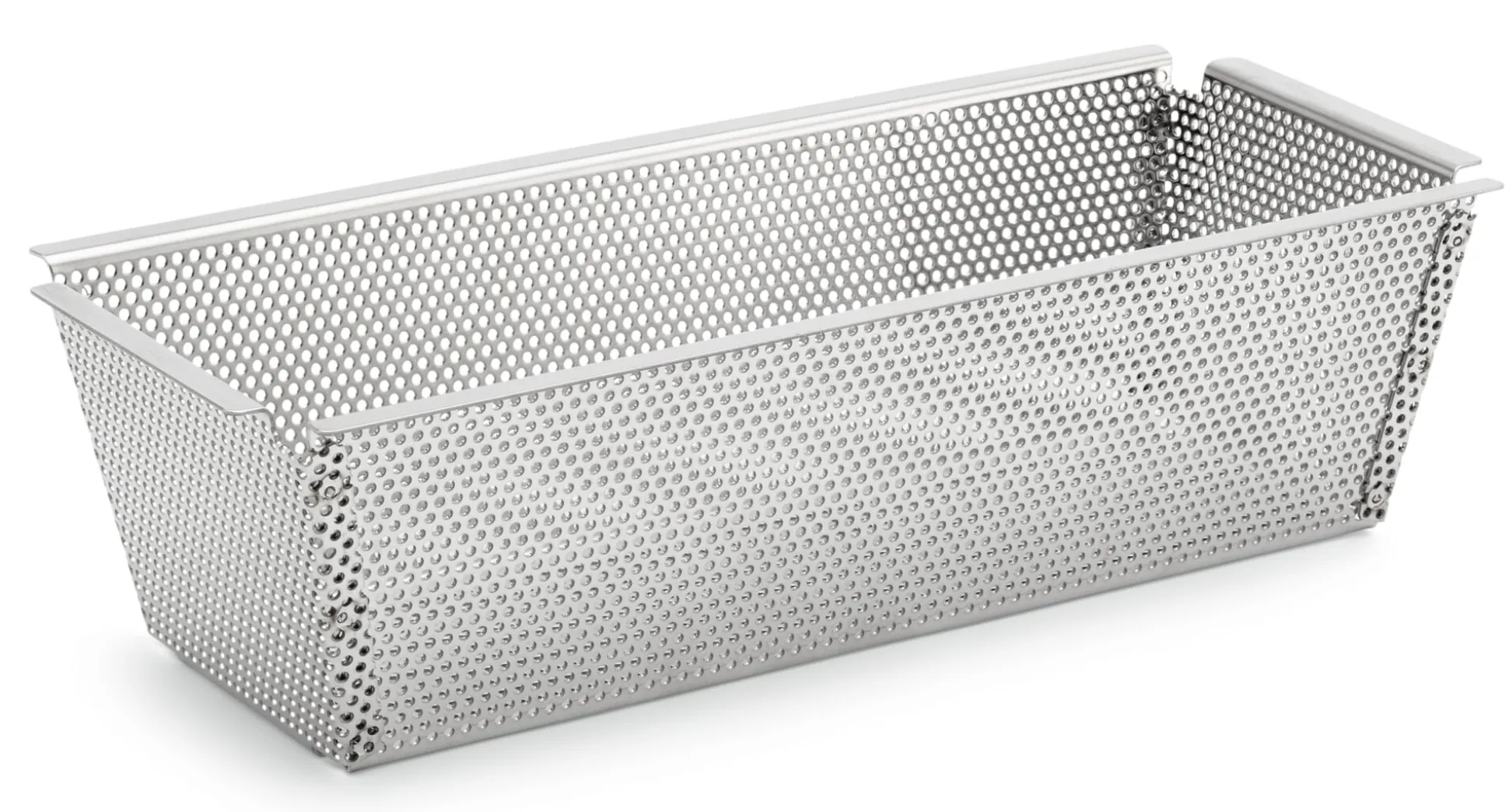 Luftig-weiches, buttriges Hefegebäck französischer Art ist eine Spezialität dieser Königskuchenform aus dem Hause de Buyer. Ordentliches Durchkneten und eine ausreichende Ruhezeit vorausgesetzt, geht der feste Teig darin besonders gut auf, die Krume wird im Ofen fluffig und die Kruste erhält den für Brioche typischen, zart-mürben Biss. Das Backergebnis wird begünstigt, da die Kastenform mit herausnehmbarem Boden aus rundherum perforiertem Edelstahl gefertigt ist. Das bedeutet eine ausgeglichene Wärmeverteilung. Zudem gelangt die Wärme des Ofens (durch Luftaustausch) direkt an das Backgut. Natürlich können Sie in dieser Backform genauso gut einen klassischen Hefezopf, süßes oder nach Wahl herzhaftes Zupfbrot, (Vollkorn-)Brot oder auch einmal eine Pastete backen.