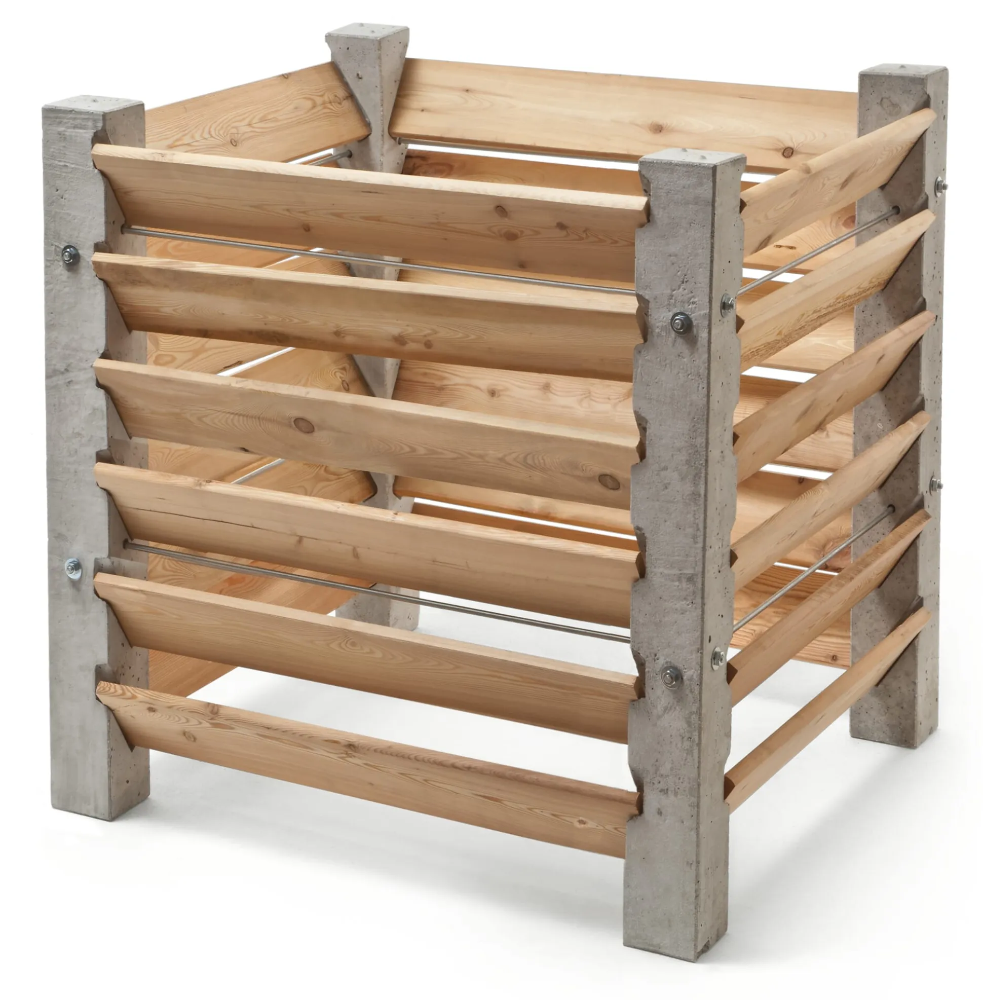 Stahlarmierter Beton und Nordische Kiefer. Kompostkiste
