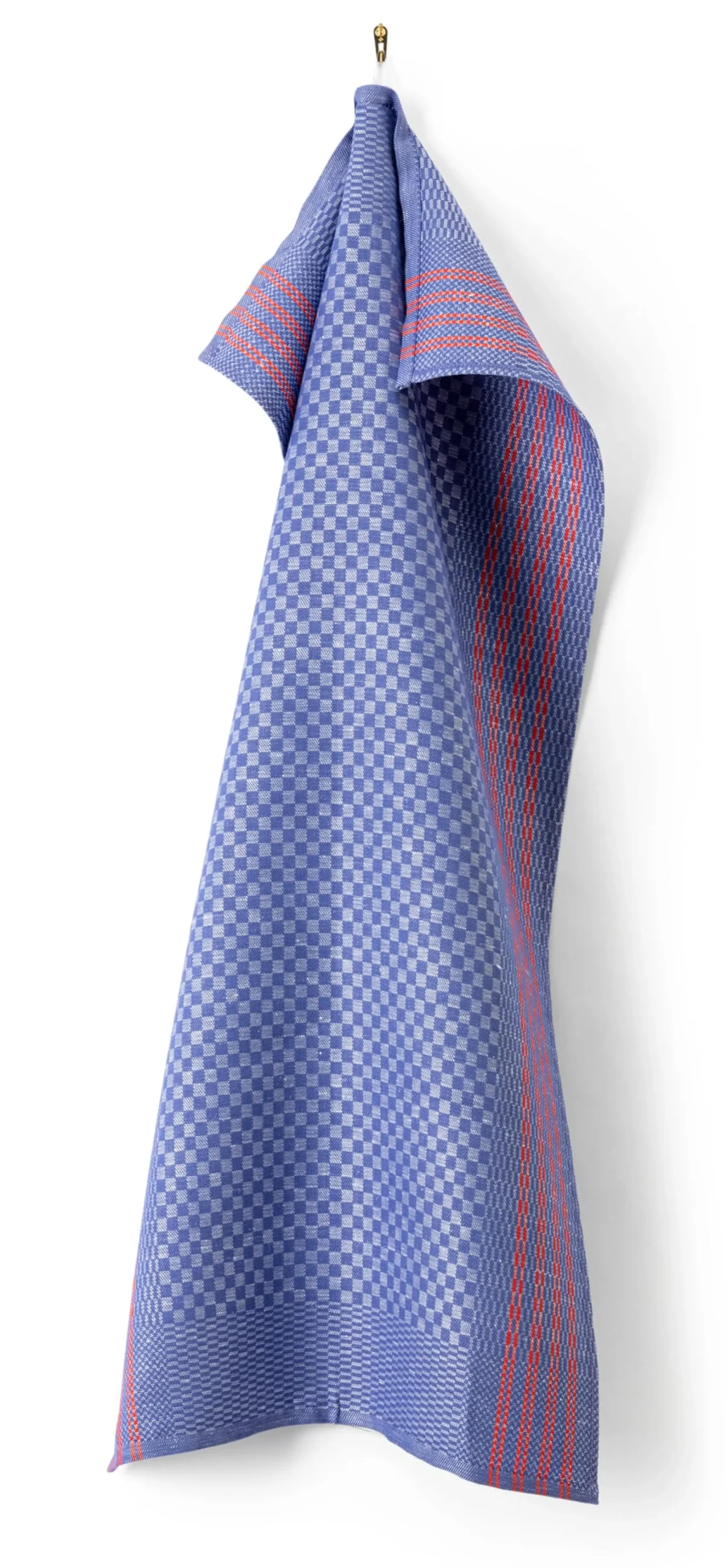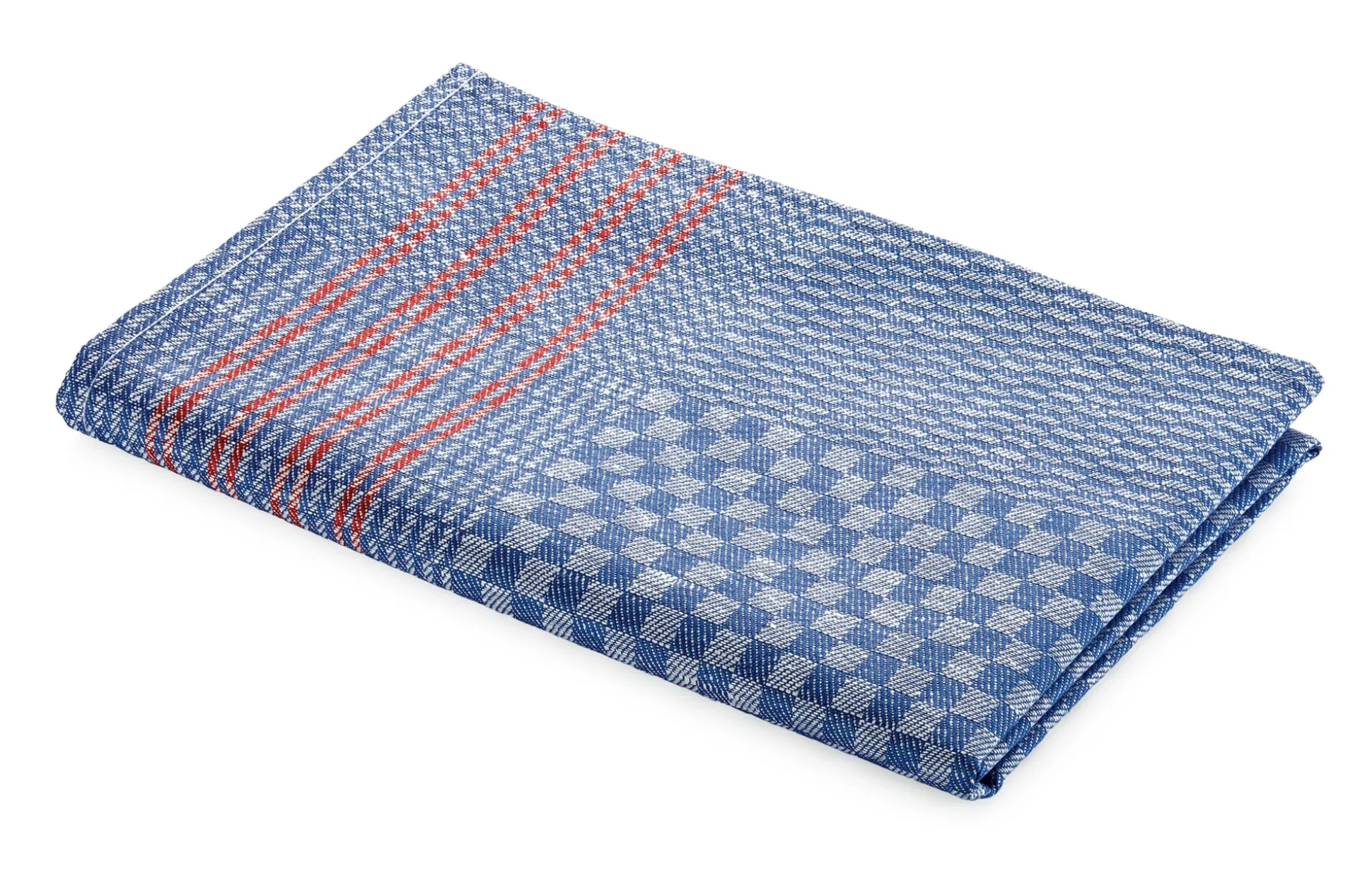 Im Ruhrgebiet heißt es Grubentuch und fehlte einst in keines Bergmanns Kaue. Dank des äußerst langlebigen und robusten Gewebes findet es sich mittlerweile auch in vielen Haushalten anderer Regionen und Länder. Noch öfter ist es in der professionellen Gastronomie anzutreffen – was zeigt, wie strapazierbar das Geschirr- und Händetuch ist. Dieses Grubentuch wird aus einem kräftigen Halbleinen in Halbzwirnqualität in versetztem Köpergrat gewebt, typisch gedeckt blau-hellblau kariert und im Rand rot abgesetzt. Das Leinen stammt aus Europa.