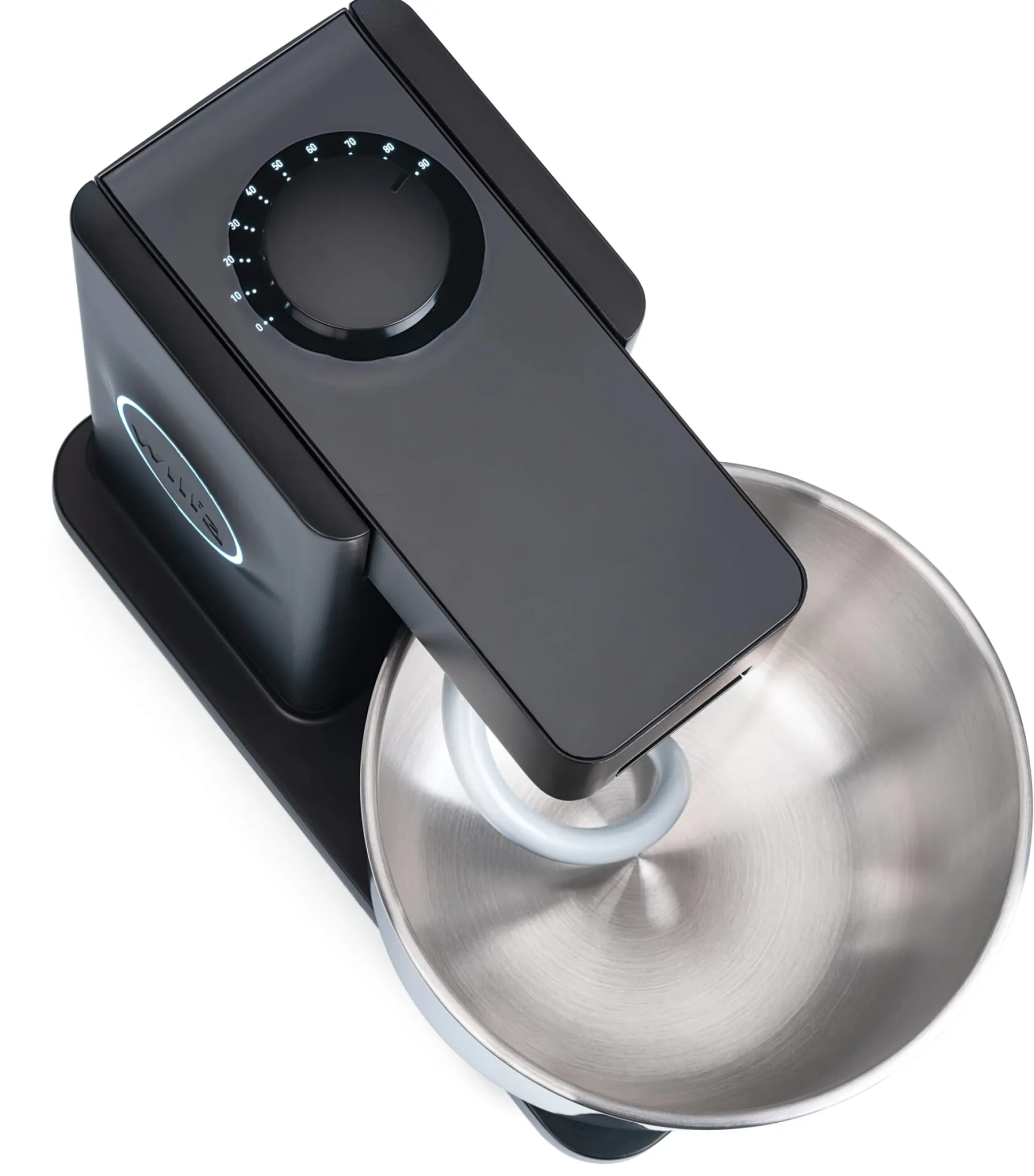Die 7-Liter-Schüssel ermöglicht dank ihrer Größe sowie ihrer dezentralen Platzierung beste Einsehbarkeit und müheloses Hinzufügen von Zutaten während des Knetvorgangs – hier ist viel „Platz am Teig“! Zum Wechsel der Aufsätze und zur Reinigung lässt sich der Maschinenarm intuitiv und einhändig von vorne entriegeln und nach oben klappen.