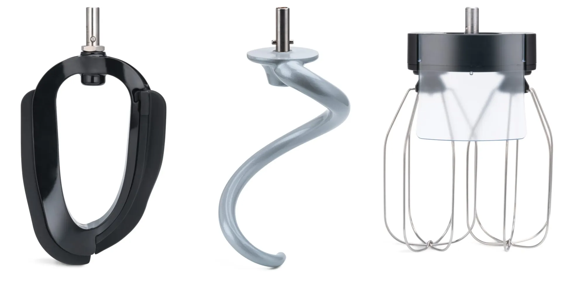Im Lieferumfang enthalten sind: Edelstahlschüssel, Aluminiumknethaken (keramikbeschichtet), Doppelschneebesen, Rührblatt (silikonummantelt), Teigschaber, Spritzschutzdeckel, Rezeptbuch und Netzkabel inkl. Schutzkontaktstecker (Typ F).