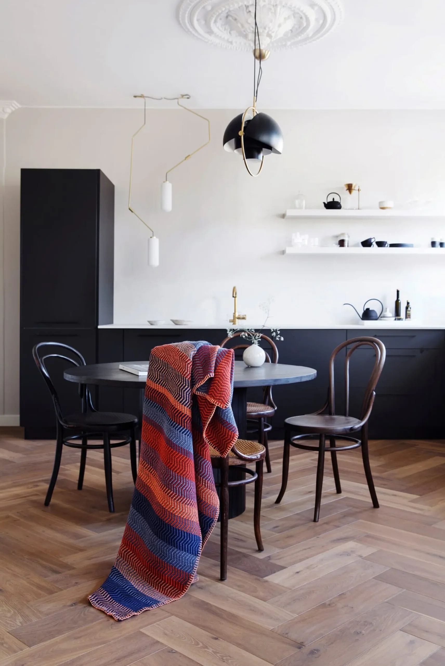 Der Entwurf Fri ist stark von der norwegischen Tradition kleiner, rechteckiger Tischdecken namens „løpere“ inspiriert. Variationen dieser Textilien sind in fast jeder norwegischen Berghütte zu finden. Typisch ist der sich wiederholende Farbrhythmus, der bei dieser Interpretation für Røros Tweed etwas aufgelöst wird: Die Farben verschieben sich scheinbar zufällig auf einem weichen Zickzackmuster. Aus weicher, norwegischer Lammwolle gewebt, hat die Decke Fri einen angenehm schmiegsamen Griff. Die Kanten sind rundum mit farblich passendem Wollgarn umkettelt. Kissenbezüge aus Lammwolle mit dem gleichen Muster finden Sie ebenfalls in unserem Sortiment.