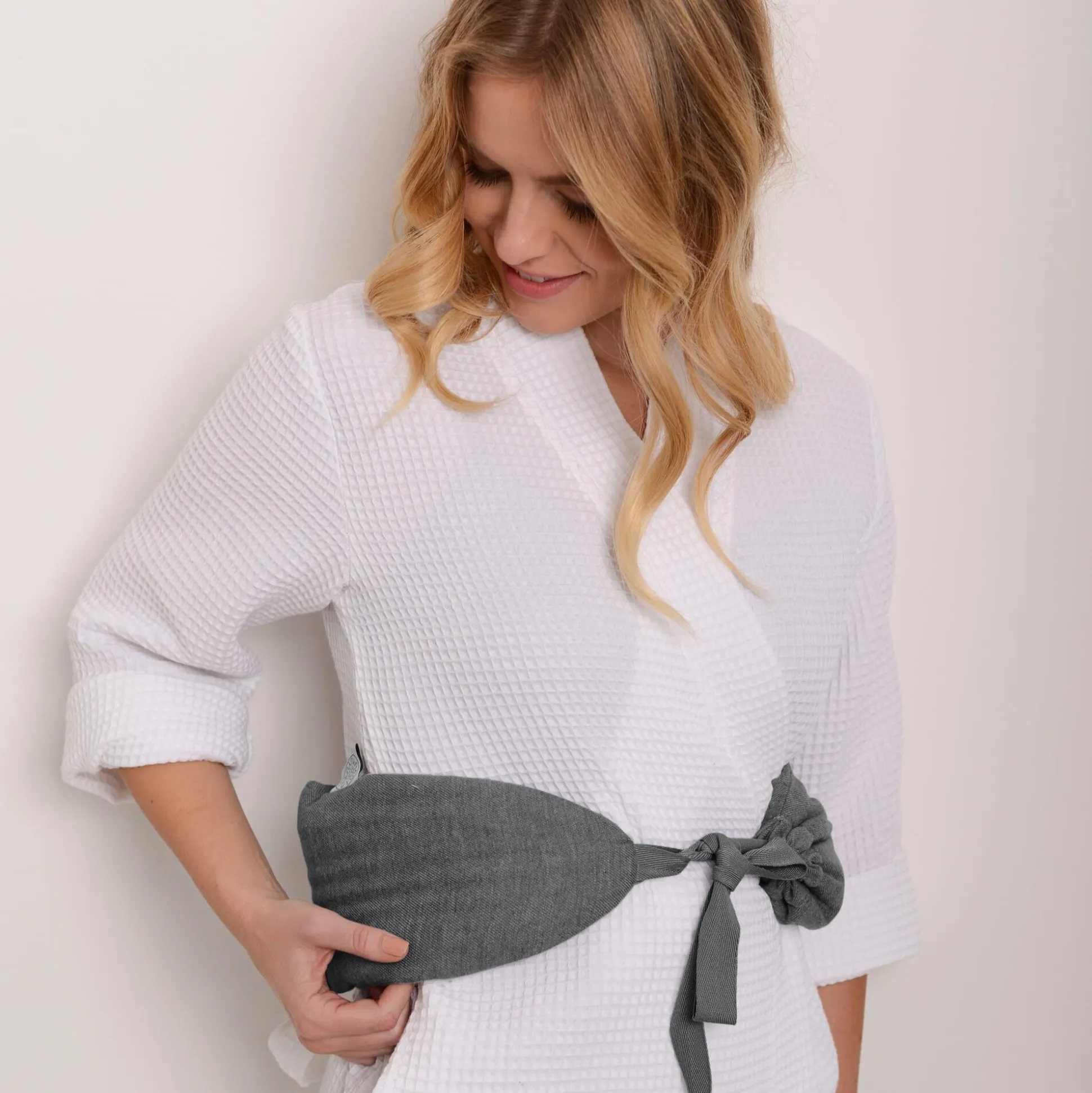 Länger auf Temperatur: Diese ausgefallene, temperierende Flasche liefert wahlweise Wärme oder Kälte genau dorthin, wo sie gebraucht wird – ob zum Aufwärmen an kälteren oder für den angenehmen Kühleffekt an heißen Tagen sowie zur Entspannung. Denn dank ihrer schlanken Form und ihrer Länge von 81 cm schmiegt sie sich den jeweiligen Konturen an und lässt sich überall am Körper nutzen. Damit sie dort auch bleibt, kann sie mit den integrierten Bändern gebunden werden. Für freie Hände zum Arbeiten, Telefonieren, Lesen, Spielen und Kochen. Für Wärme und Kälte zum Mitnehmen – an die Bahnhaltestelle, auf tägliche Wege mit dem Fahrrad oder auf den Nachmittagsspaziergang. Die Flasche hält bis zu 6 Stunden warm oder kühl.