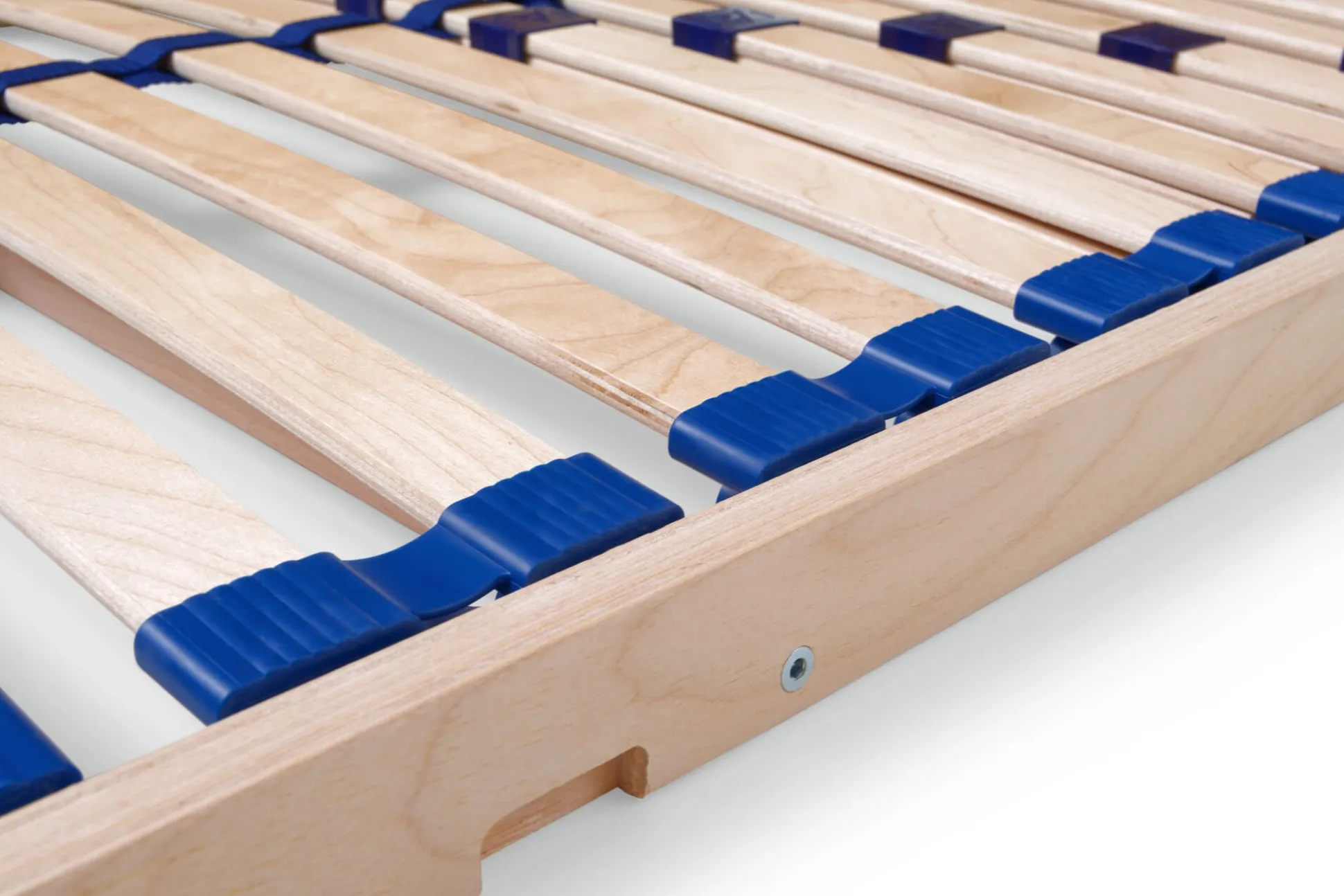 Robuster Rahmen aus Birkenschichtholz: Mit 28 flexiblen Federleisten und geringen Leistenabständen sorgt der LATTENROST RO für eine gleichmäßige Unterstützung des Körpers und ist für jeden Matratzentyp geeignet.