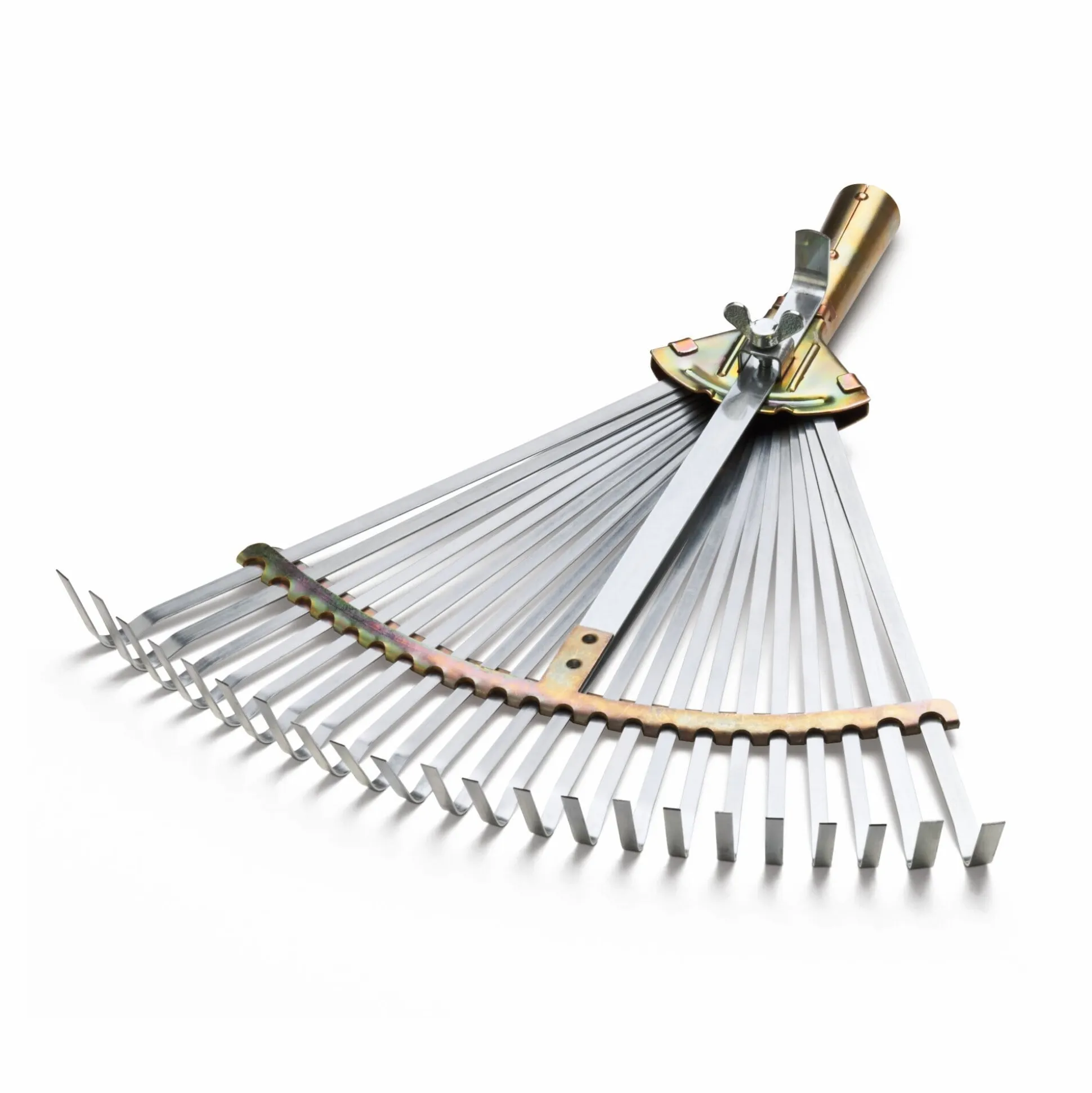 22 Zinken, Stahl verzinkt, Länge 29 cm. Hergestellt in Deutschland. Gewicht 680 g. Für konisch zugespitzte Stiele bis 28 mm Ø.