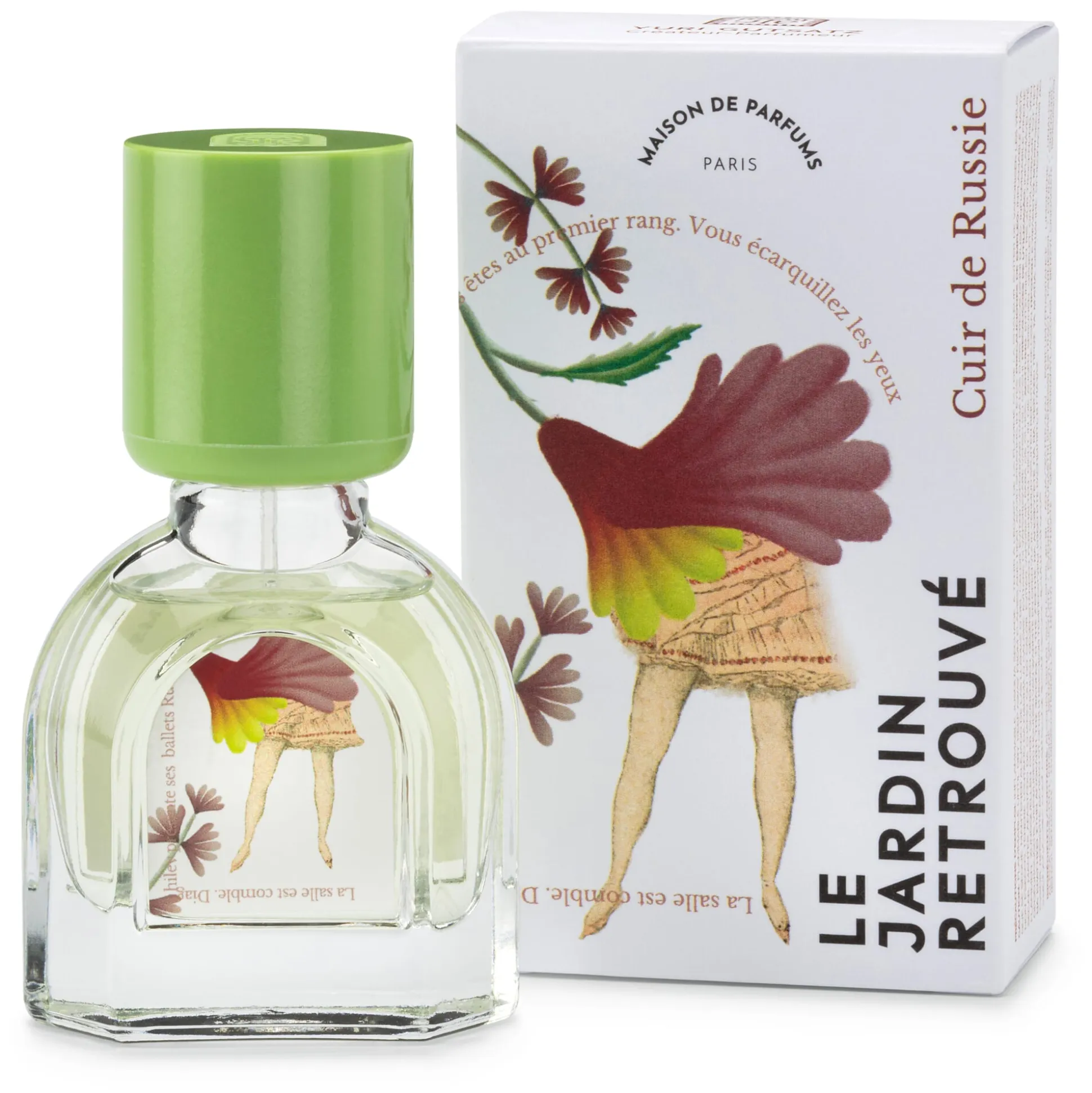 Yuri Gutsatz hat Cuir de Russie 1977 kreiert und damit eine neue Facette von Russian Leather geschaffen. Es ist dezenter und eine Spur spritziger er als die üblichen Leder-Parfüms, dennoch charaktervoll. Die florale Komponente verleiht Leichtigkeit und Frische, die Harze Tiefe und Wärme, weshalb es eher ein Winter- als ein Sommerduft ist. Die erdig-süßlichen Noten von Styrax, Ylang-Ylang, Zedern-Wacholder und Patschuli empfinden viele als entspannend, entsprechend hat Givaudin es mit dem „Mood Booster Quality of Sleep“ zertifiziert. Als einziger Duft im Portfolio von Le Jardin Retrouvé referiert Cuir de Russie – Leder aus Russland – im Namen nicht an einen Garten, sondern erinnert an die Herkunft des Vaters von Firmengründer Yuri Gutsatz.