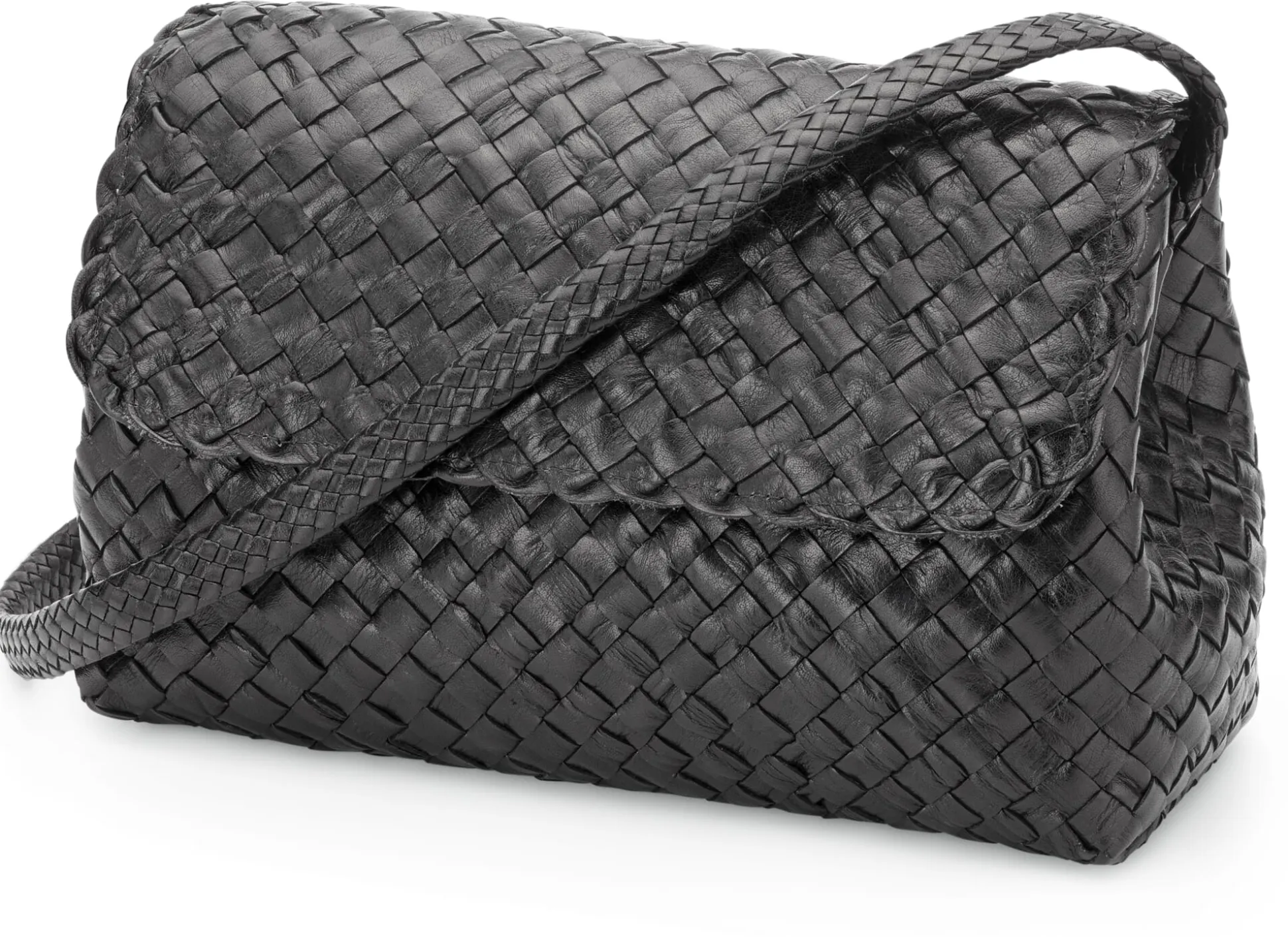 Minimalistisch veranlagte Menschen wissen eine kleinere Handtasche zu schätzen, um die essenziellen Dinge des Lebens stets bei sich zu haben. Umso schöner, wenn sich Funktionalität und Stil zu einem so bemerkenswerten Utensil vereinen wie in dieser Lederhandtasche von Allan K. Die zwei Millimeter starken, zugleich geschmeidigen Büffellederstreifen, von kundiger Hand durchgehend geflochten, ergeben eine tiefschwarze Oberfläche, die je nach Lichteinfall neu zu glänzen weiß. Der flach geflochtene Trageriemen liegt komfortabel auf der Schulter auf, zwei verdeckt gearbeitete Magnetdruckknöpfe unter dem Überschlag halten die Handtasche geschlossen. Mit einem hellbraunen, durablen Baumwollköper gefüttert, überzeugt das Tascheninnere bereits durch sein patentes Fassungsvermögen, das dem gut zehn Zentimeter tief angelegten Taschenboden zu verdanken ist. Möchten Sie sich zwischendurch die Nase pudern, Nachrichten auf dem Handy prüfen oder mit stolzer Geheimagent*innen-Geste den USB-Stick hervorholen, ermöglicht Ihnen der tiefe Boden, die Tasche standsicher abzustellen, damit Sie beide Hände freihaben, während sich Ihnen übersichtlich das Innenleben offenbart. Dort findet sich neben zwei Steckfächern an der vorderseitigen Innenwand und einem rückseitig eingelassenen Reißverschlussfach ein weiteres, mittig eingearbeitetes Reißverschlussfach, so perfekt proportioniert, dass es Ihnen die zusätzliche Karten- und Geldbörse ersetzen kann (wenn Sie möchten).