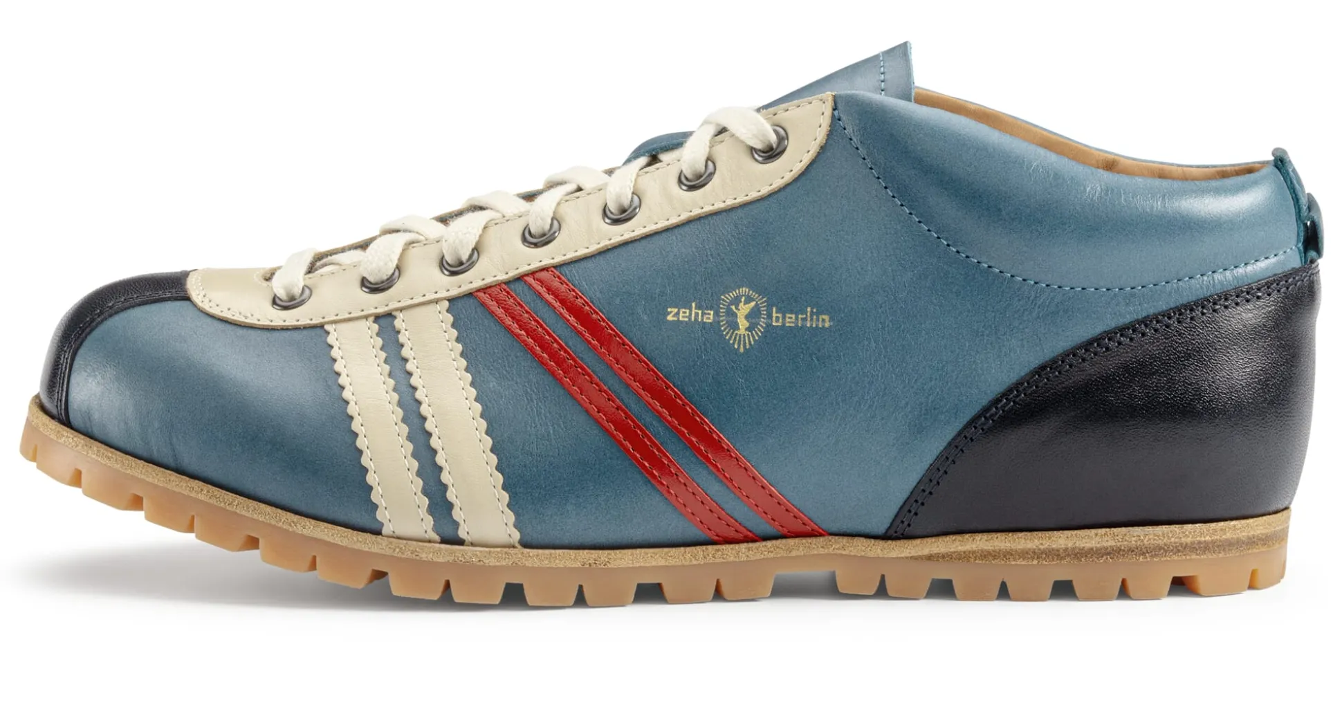 Der Liga ist eines der ersten zwei Modelle von Zeha Berlin – und wie die gesamte Carl-Häßner-Kollektion inspiriert von den ursprünglichen Designs der Zeha Fußballschuhe aus den 1950er- und 60er-Jahren. Mehr als 200 Arbeitsschritte sind nötig, um die Langlebigkeit der Schuhe und ihren Tragekomfort zu gewährleisten: eine gepolsterte Schaftkante, ein verstärkter Zehen- und Fersenbereich sowie eine gepolsterte Innensohle. Hinzu kommt bei diesem Modell noch eine griffige, ordentlich profilierte Gummilaufsohle aus dem Hause Vibram®. Der Schuh wird mit einem Paar Austauschschnürsenkel in einer zweiten Farbe geliefert.