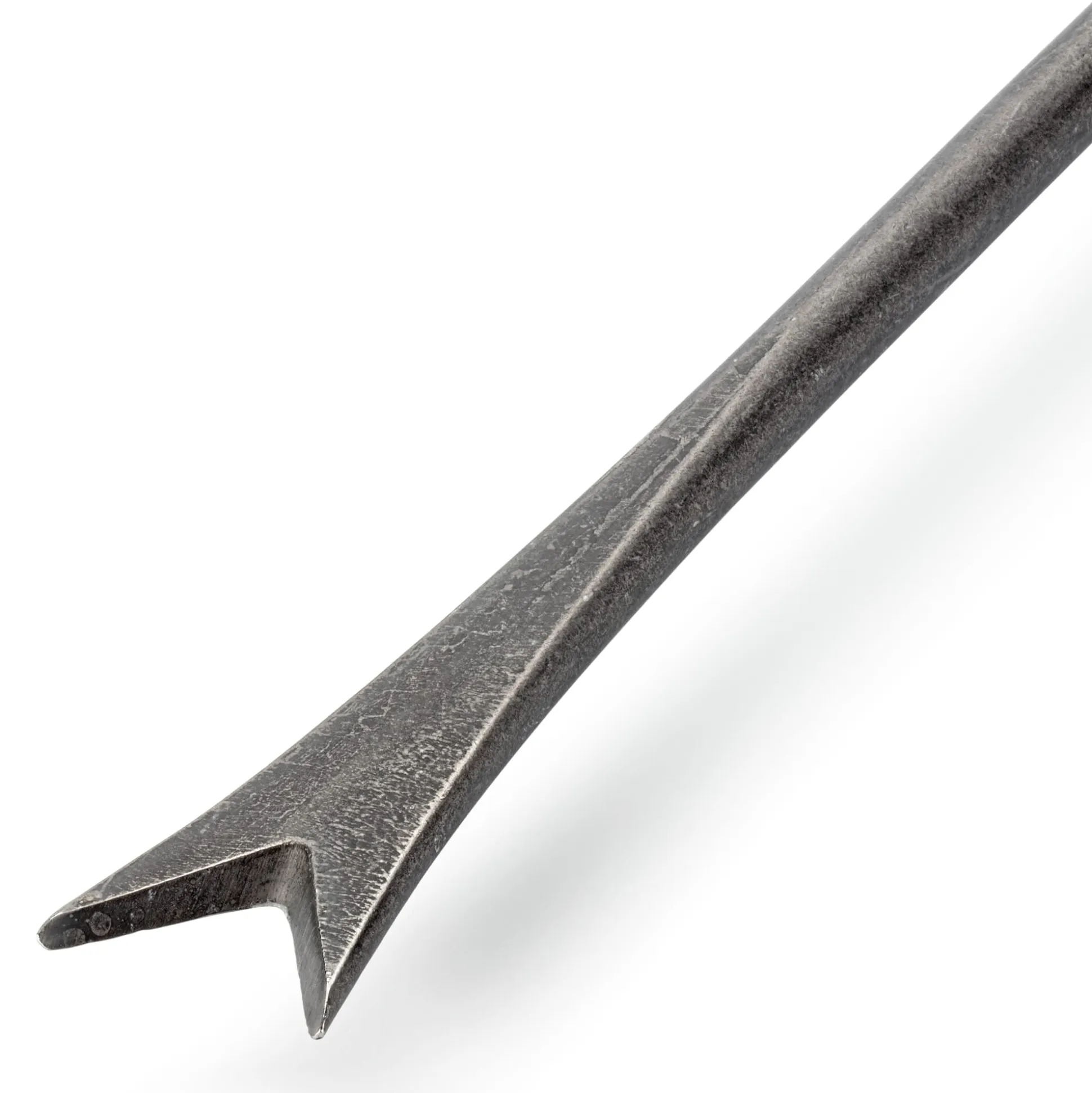 Werkzeugkopf mit eingekerbtem Blatt und geschärften Kanten aus Mangan-Bor-Stahl geschmiedet (L 21 × B 2,5 cm). Stiel Eschenholz lackiert. Gesamtlänge 69 cm. Gewicht 330 g.