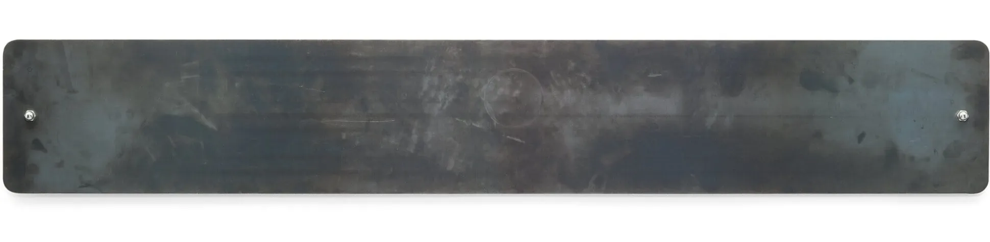 Senkrecht neben der Tür montiert und mit den passenden, starken Magneten ausgestattet, hält diese Leiste aus warmgewalztem Rohstahl Notizen (wie den Einkaufszettel), Visitenkarten, ein- und ausgehende Korrespondenz und nicht zuletzt all die Dinge vor, die man beim Verlassen der Wohnung oder des Hauses braucht und oft genug hektisch und auf den letzten Drücker („Wo sind die Eintrittskarten für die Oper?“, „Hat jemand den Autoschlüssel gesehen?“) sucht.
