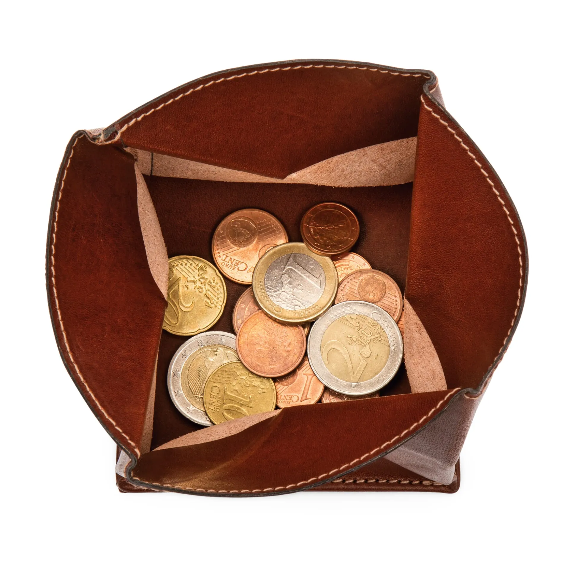 So elegant legen sich nur wenige Portemonnaies in Falten: Das ungefütterte Münzfach wird durch eine Drehung der Laschen um 90 Grad geöffnet und ebenso geschlossen. Auf der Unterseite unserer Faltbörse befindet sich zusätzlich ein Fach für Geldscheine, das mit einem versteckt angebrachten Druckknopf aus Messing verschlossen wird. Wir lassen die Geldbörse aus dem feinen Rindleder unserer Manufactum Lederkollektion fertigen.