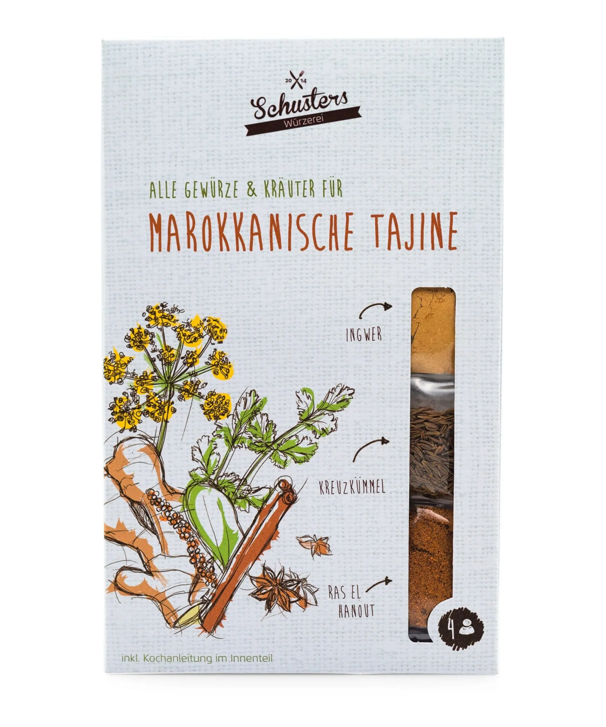 Würzmischungen mögen praktisch sein, doch man verpasst damit das Beste am Kochen, das bewusste Würzen und Wahrnehmen der Aromen. Und Mischungen passen doch auch nicht so recht zum Manufakturen-Gedanken. Anderseits ist auch nicht jeder gleich ein Würz-Meister. Oder man hat einfach nicht alles da, was im Rezept gefordert wird, zum Beispiel im Ferienhaus. Schließlich: Wie oft braucht man ein besonderes Gewürz dann doch nicht auf und es wird fade! Hier kommt Timo Schuster aus Berlin ins Spiel mit Schusters Würzerei. Es kam ihm der Gedanke, dass es nicht nur lehr-, sondern auch hilfreich sein könnte, Gewürzmischungen wieder in die Bestandteile aufzudröseln und für verschiedene Gerichte anzubieten. Schusters Würzerei war geboren, zumindest der Grundgedanke. Dann ging es ans Ausprobieren der Rezepte und Austarieren der Gewürze, dann galt es, verlässliche Importeure für eine hervorragende Qualität zu finden. Eine kleine multikulturelle Rezept- und Gewürzsammlung ist daraus inzwischen geworden. Meist steht eine Rezeptvariante mit und eine ohne oder mit weniger Fleisch zur Verfügung. Klare Kochanweisungen machen Spaß bei der Zubereitung. Die Gewürze im flachen Umschlag sind zum Beispiel bei einem kurzen Urlaub sehr praktisch: Man sucht sich ein paar Gerichte aus, nimmt die Gewürze mit, kauft die restlichen Zutaten und ist aller Grübeleien über den Speiseplan enthoben. Aber natürlich sind sie auch sehr schöne Geschenke für den kleinen Anlass oder einfach gut, um immer ein paar im häuslichen Vorrat zu haben.