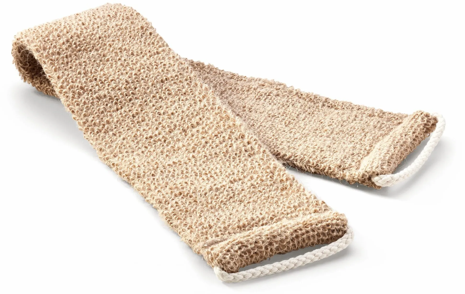 Ein aus Flachs und Baumwolle gestrickter Massagegurt, der dank der stark strukturierten Oberfläche und dem hohen Flachsanteil von über 50 Prozent eine massierende Wirkung und einen leichten Peelingeffekt hat. Durch die Baumwolle ist das Gewebe flexibel und passt sich dem Körper gut an, die Handschlaufen ermöglichen es, auch den Rücken kräftig zu bearbeiten. Der Massagegurt kann von Zeit zu Zeit in der Waschmaschine gereinigt werden.