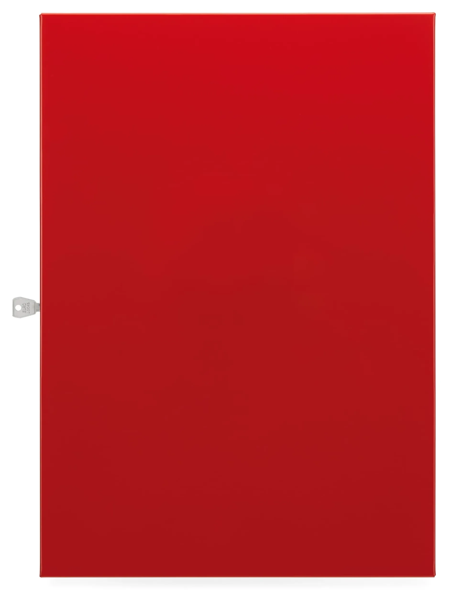 Der funktionale Clou: Die aufschlagende Tür hat die identische Tiefe wie der Schrankkorpus. So lässt sich aller Inhalt gut sortieren und auf Anhieb überblicken. Der Schrank besitzt insgesamt drei Fachböden und ist abschließbar.