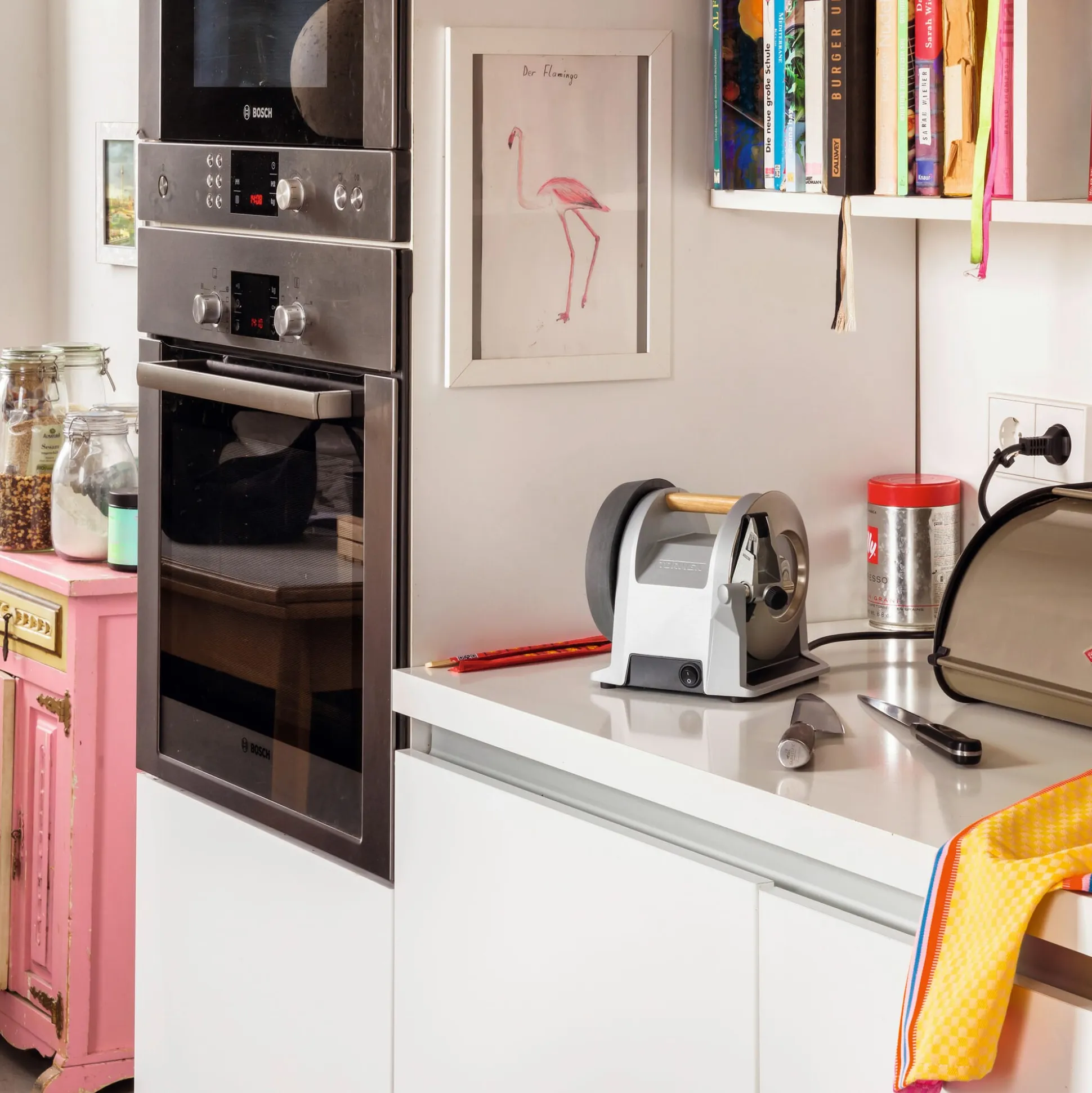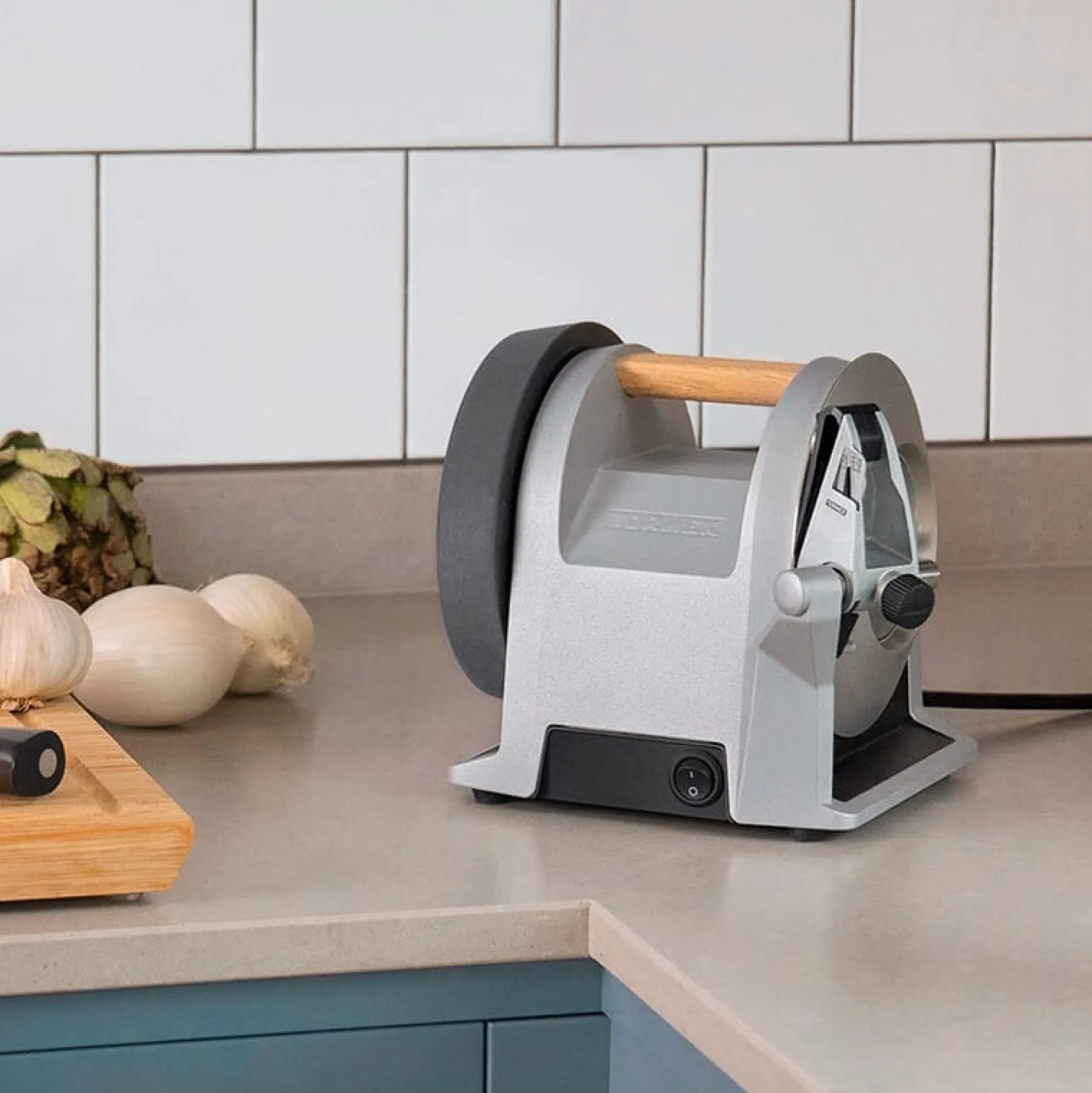 Entwickelt für all die Köch*innen, die nicht nur Wert auf hochwertige Messer legen, sondern denen die Pflege der Ausrüstung am Herzen liegt. Die T-1 von Tormek ist bildschön, kompakt genug, um in der privaten Küche nicht im Weg zu stehen und sie ist einfach zu bedienen – mit professionellem Ergebnis. Die kleine, formschöne und laufruhige Maschine vom renommierten Spezialhersteller sorgt mit der Möglichkeit, den Schleifwinkel individuell einzustellen, für perfekten Schliff.