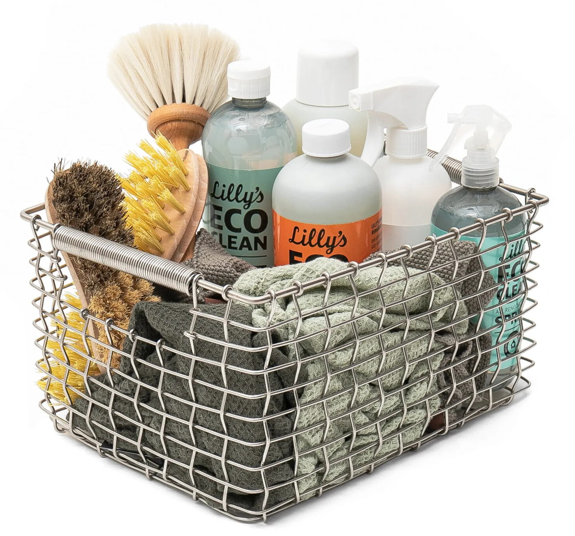 Robuste, handgeflochtene Stahlkörbe aus Schweden. Ursprünglich wurden diese unverwüstlichen und schönen Behälter aus feuerverzinktem Stahldraht in der Fischerei und im Gartenbau genutzt. Der verwendete feuerverzinkte Stahldraht hat eine mattgraue Oberfläche, die ihn vor Korrosion bewahrt. Die Technik des Feuerverzinkens wird seit über 150 Jahren verwendet, um Stahl vor Witterungseinflüssen, Wind und Abnutzung zu schützen.